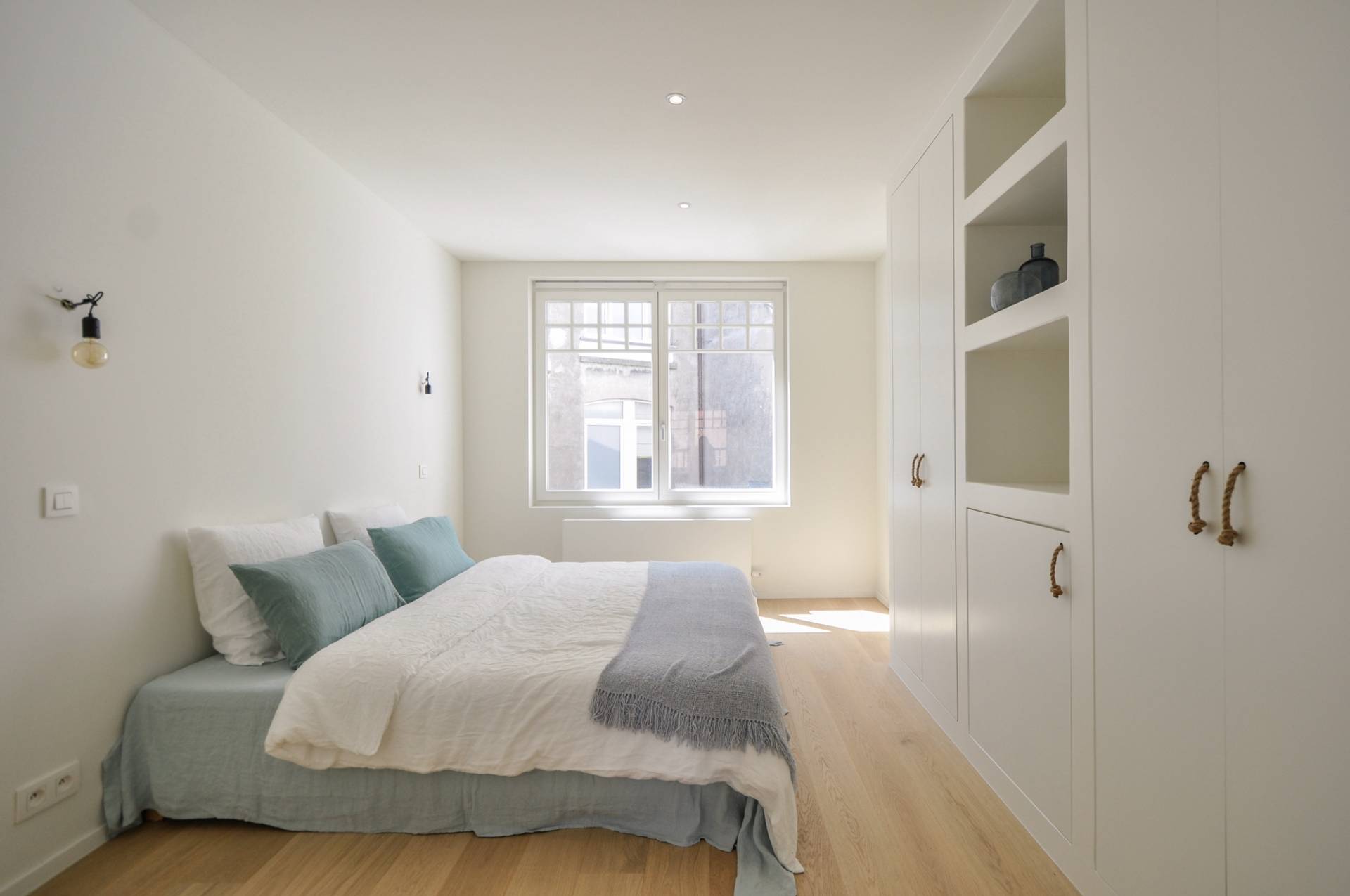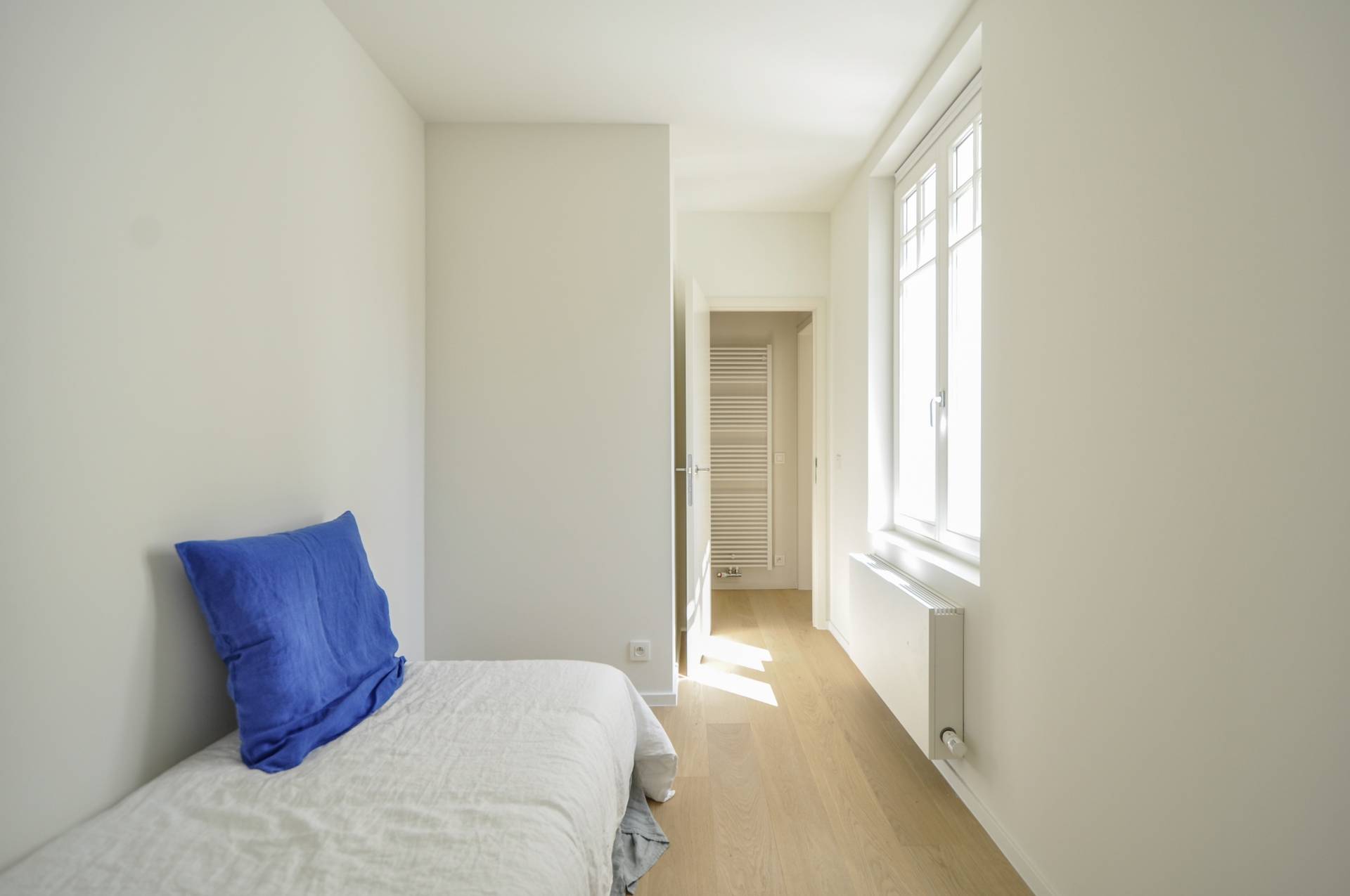 Il y a 1 chambre très spacieuse et lumineuse avec placards intégrés. Possibilité de placer une machine à laver. 2ème chambre. Il y a une salle de douche avec douche et lavabo.