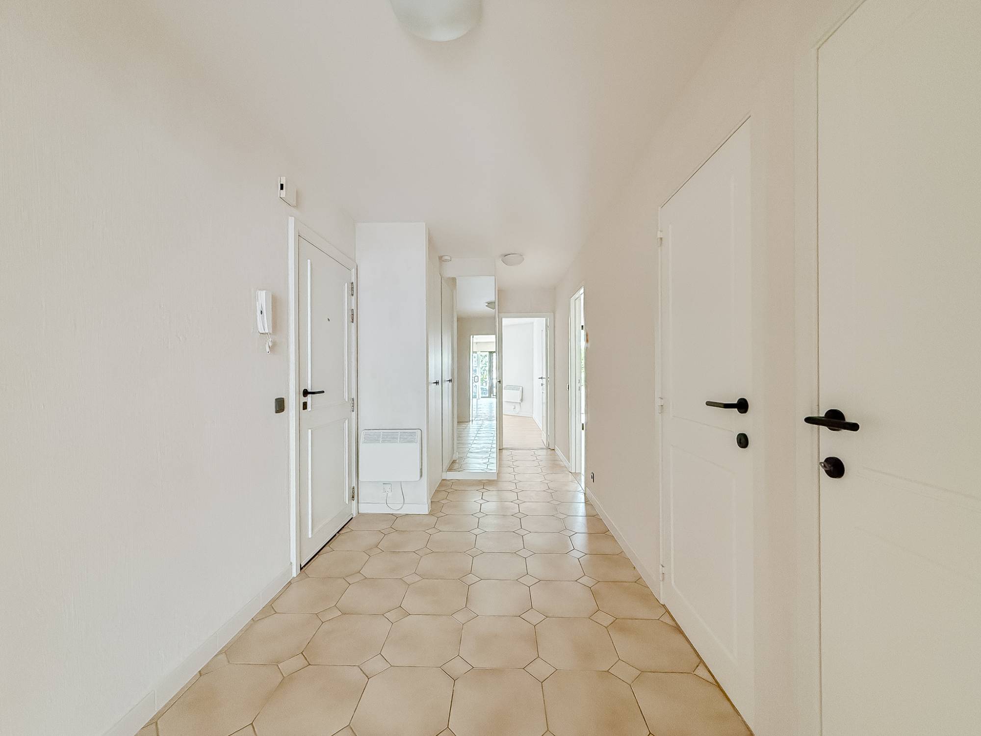 Il se compose d’un vaste hall d’entrée avec vestiaire et toilette invités, d’un séjour lumineux avec coin repas et cuisine ouverte. La terrasse offre une vue agréable et apaisante.