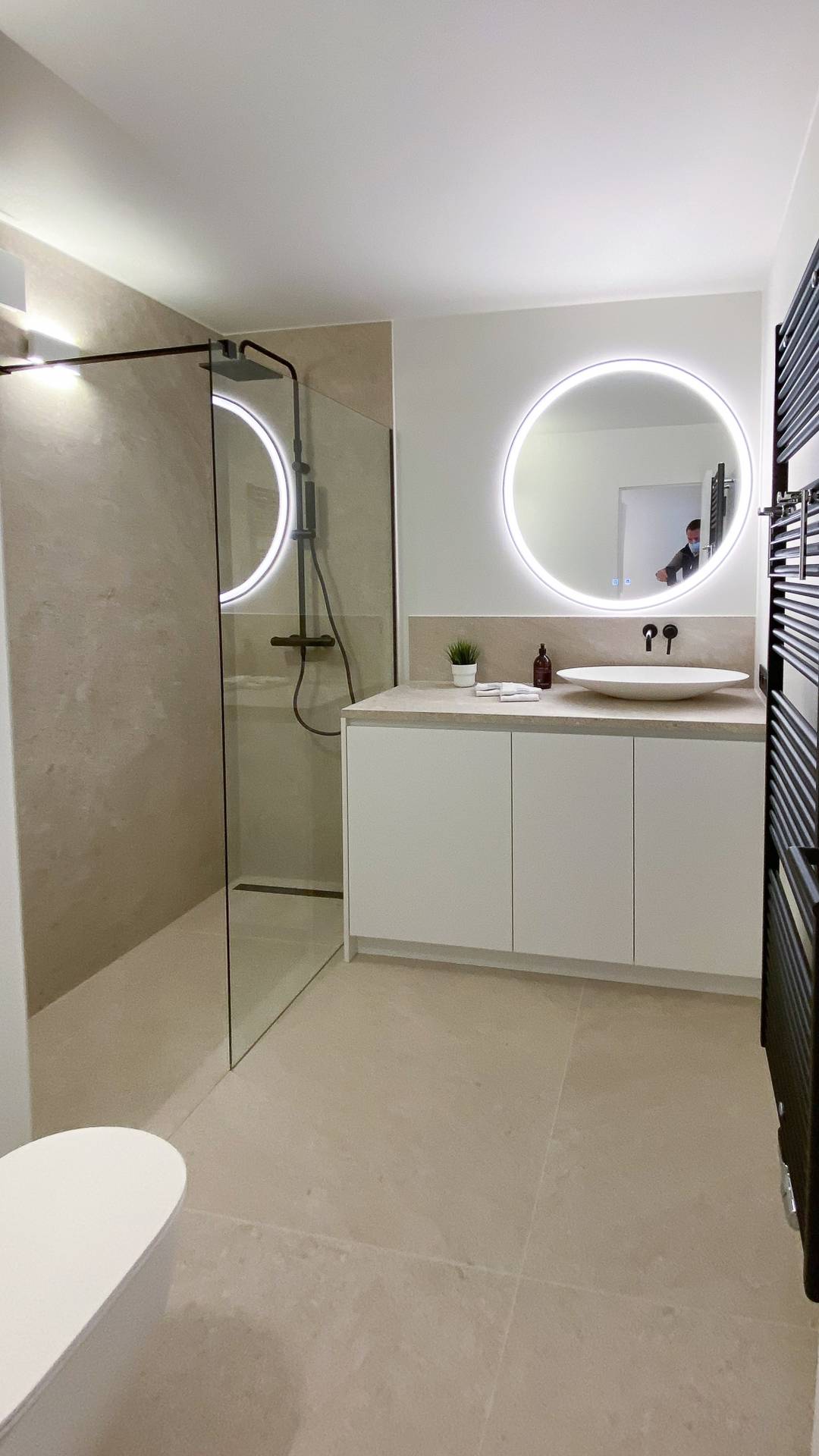 Il y a 3 chambres dont 1 qui s'ouvre sur la terrasse ensoleillée devant, avec vue sur le Yzerpark. 2ème belle chambre. 3ème chambre avec lits superposés. Il y a 2 salles de bains luxueusement aménagées.