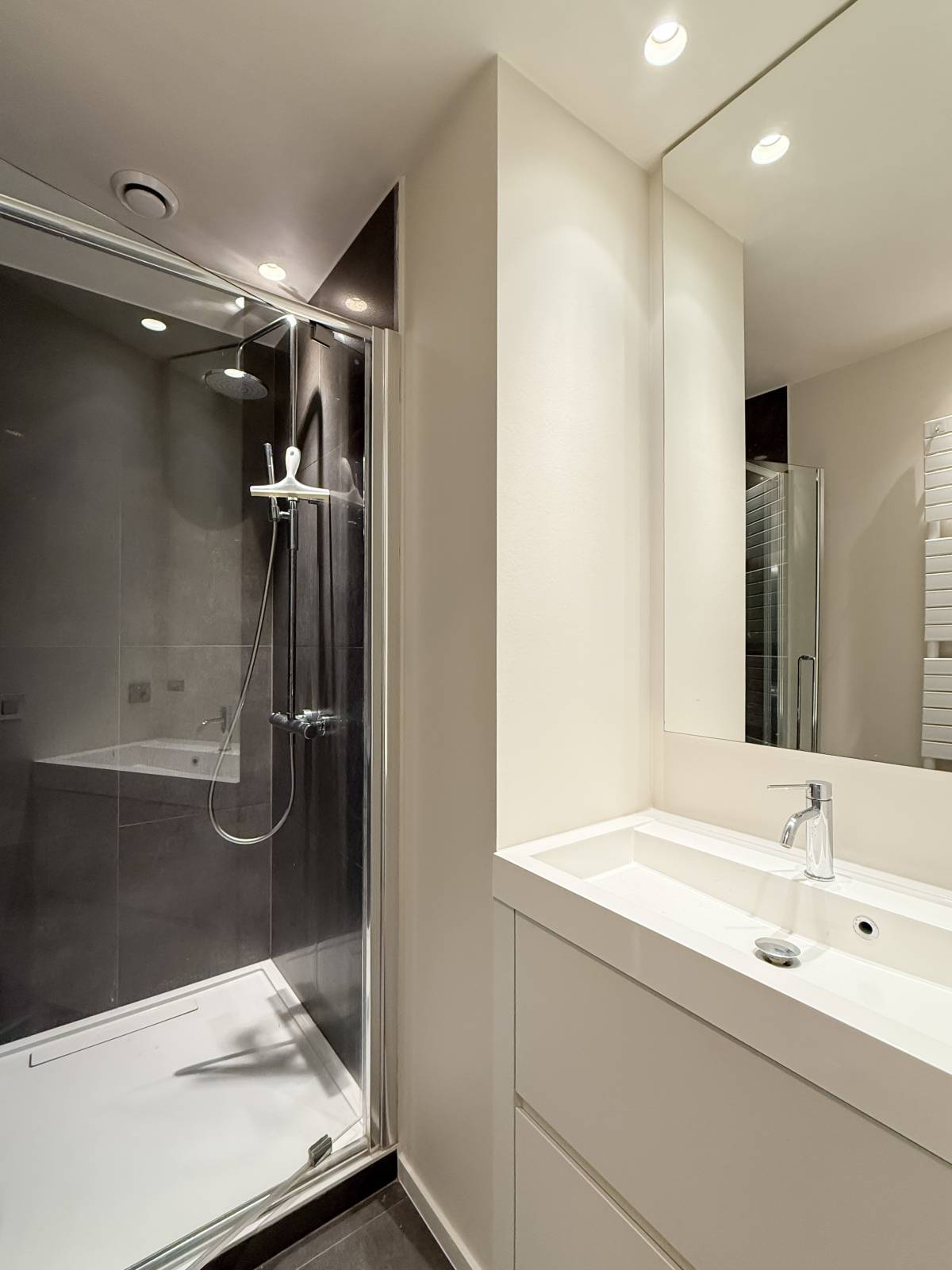 Disposition: hall d’entrée avec vestiaire et toilettes invités séparées. Le séjour lumineux s’ouvre sur une agréable terrasse où vous profitez pleinement de la vue mer et de l’animation élégante de la Place Albert. Coin repas attenant et cuisine ouverte entièrement équipée avec tout le confort moderne.