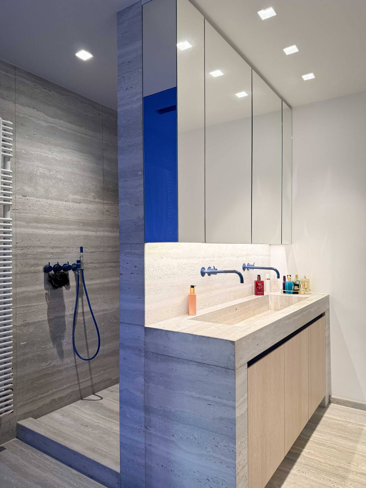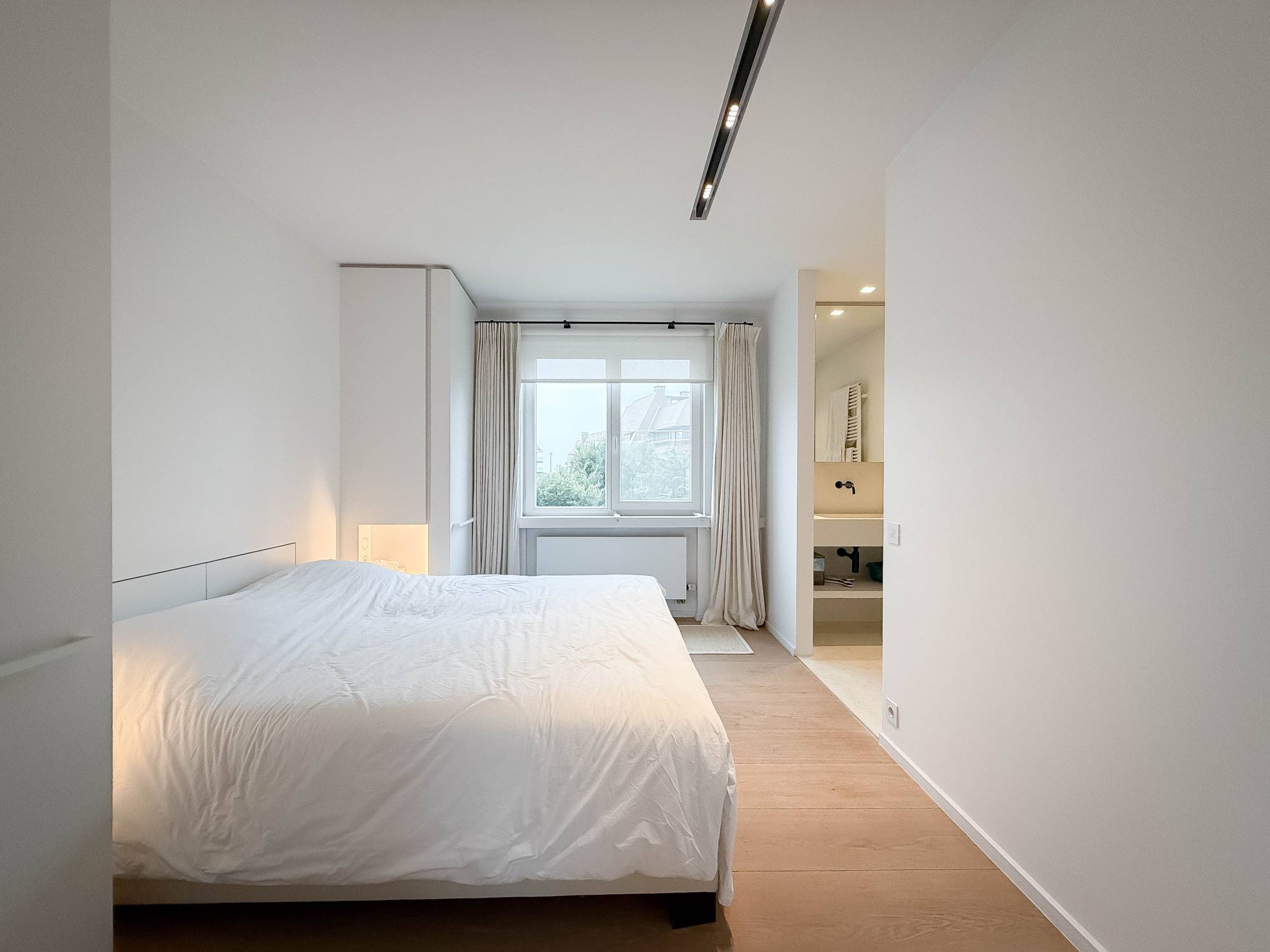 L’appartement comprend trois chambres spacieuses, chacune dotée de placards intégrés et de sa propre salle de bains ou salle de douche.