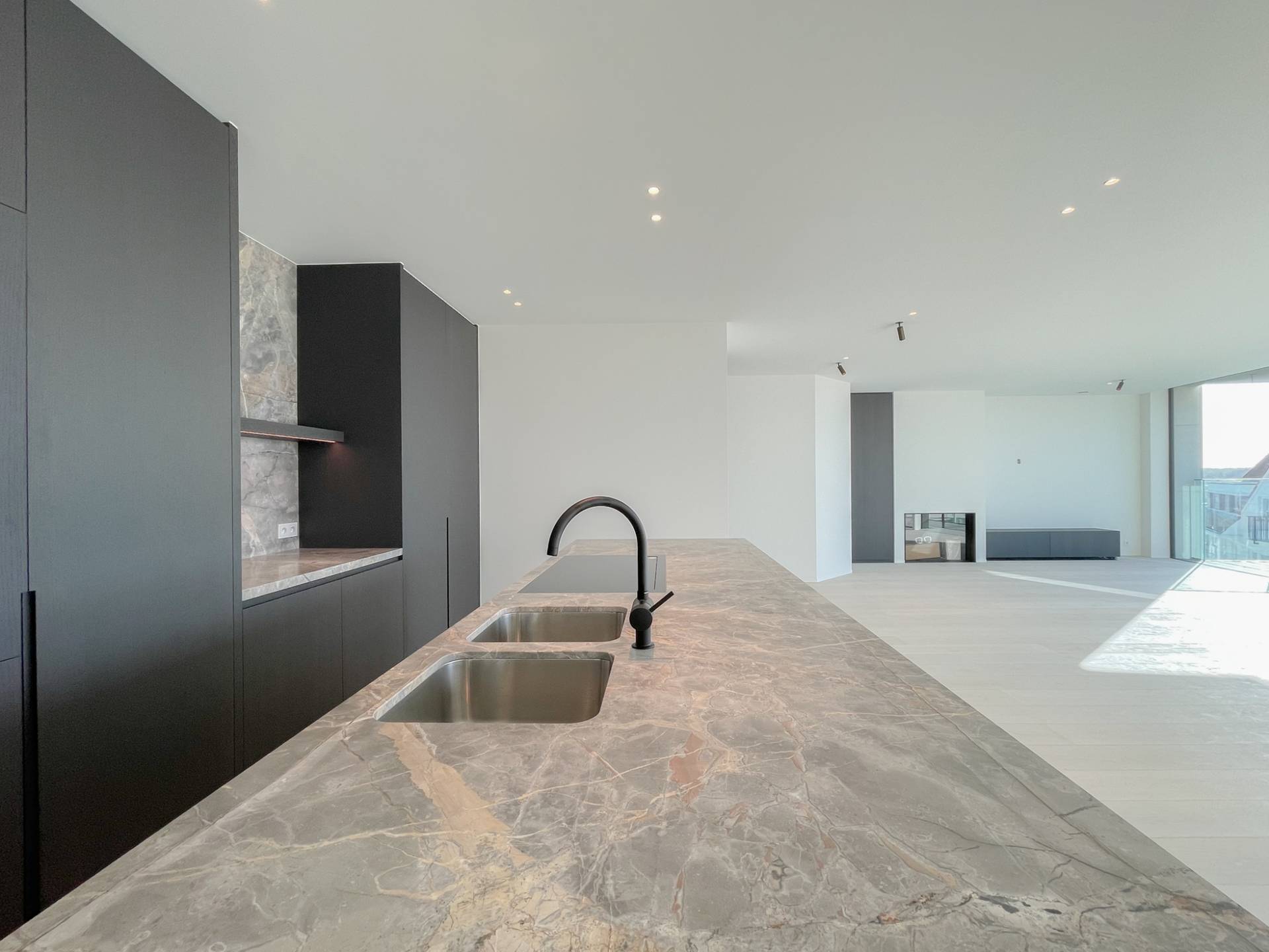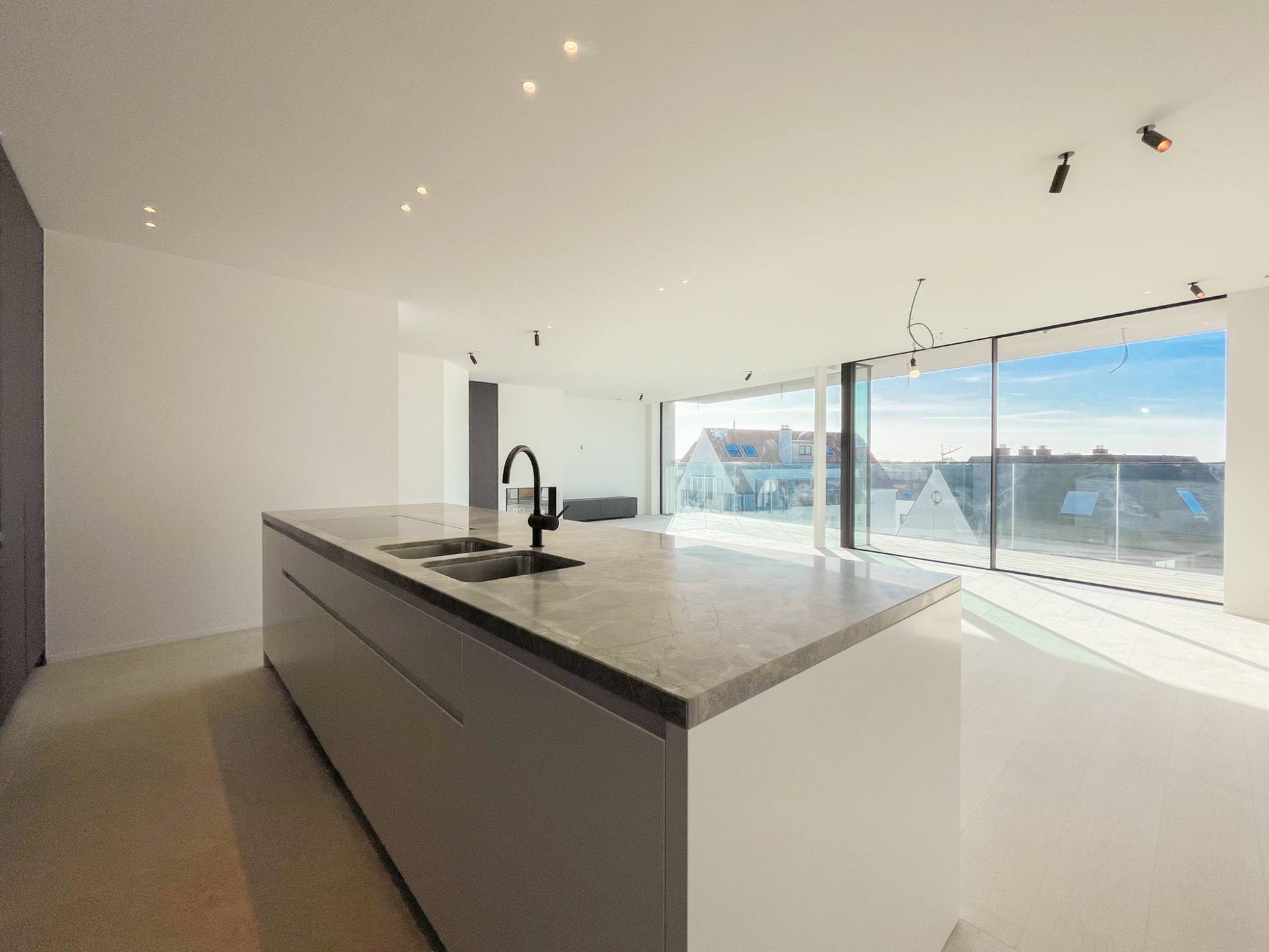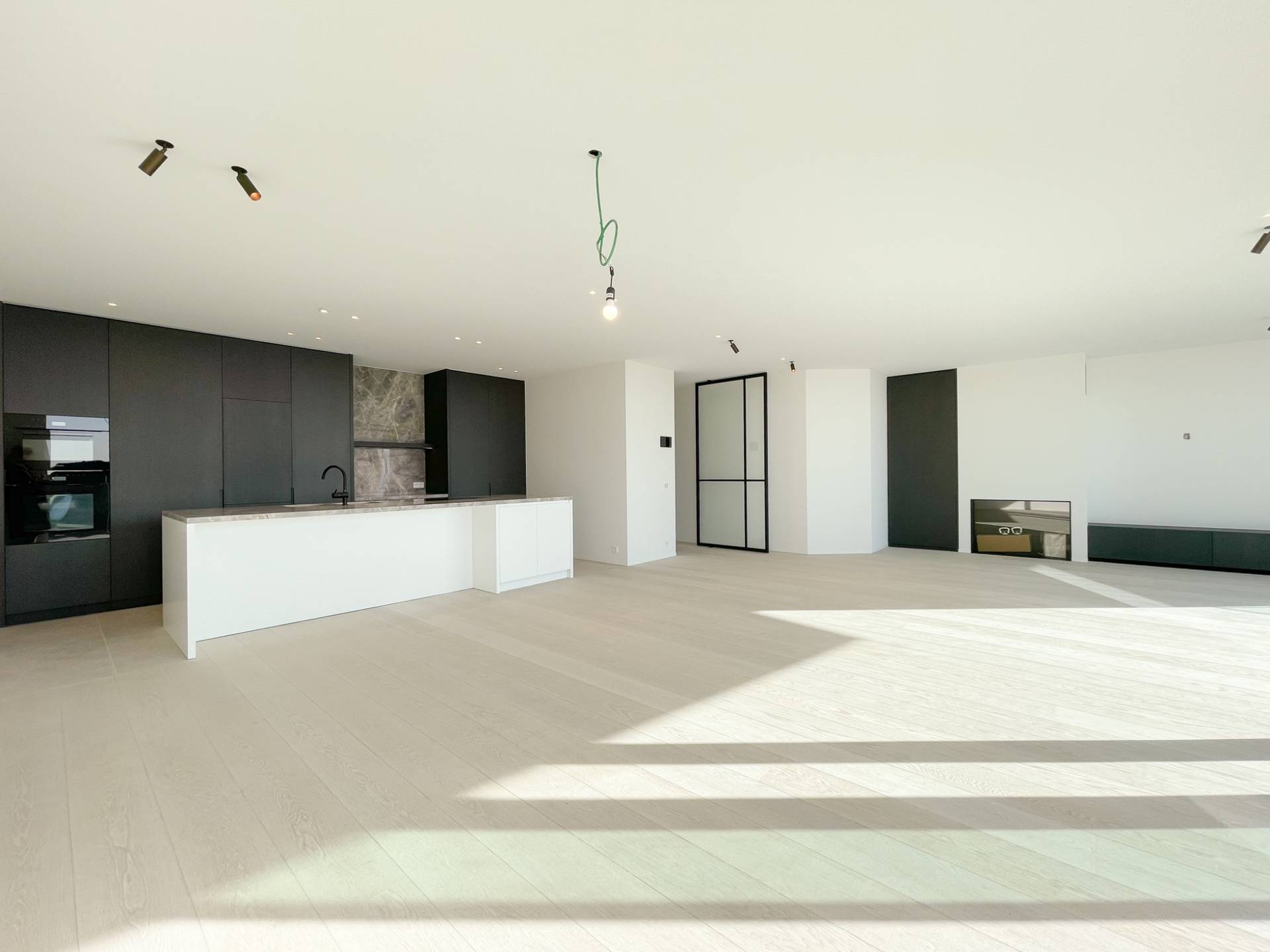 Disposition: Entrée avec vestiaire et toilettes invités. Grand salon (9m de largeur) avec de grandes fenêtres offrant une vue dégagée sur les villas du Zoute et accès à la terrasse orientée sud. Cuisine ouverte avec tout le confort moderne et un débarras. Chambre principale avec armoires encastrées et salle de douche attenante (douche à l'italienne, double lavabo et toilettes). Les deux autres chambres ont également des armoires encastrées. Salle de douche séparée.