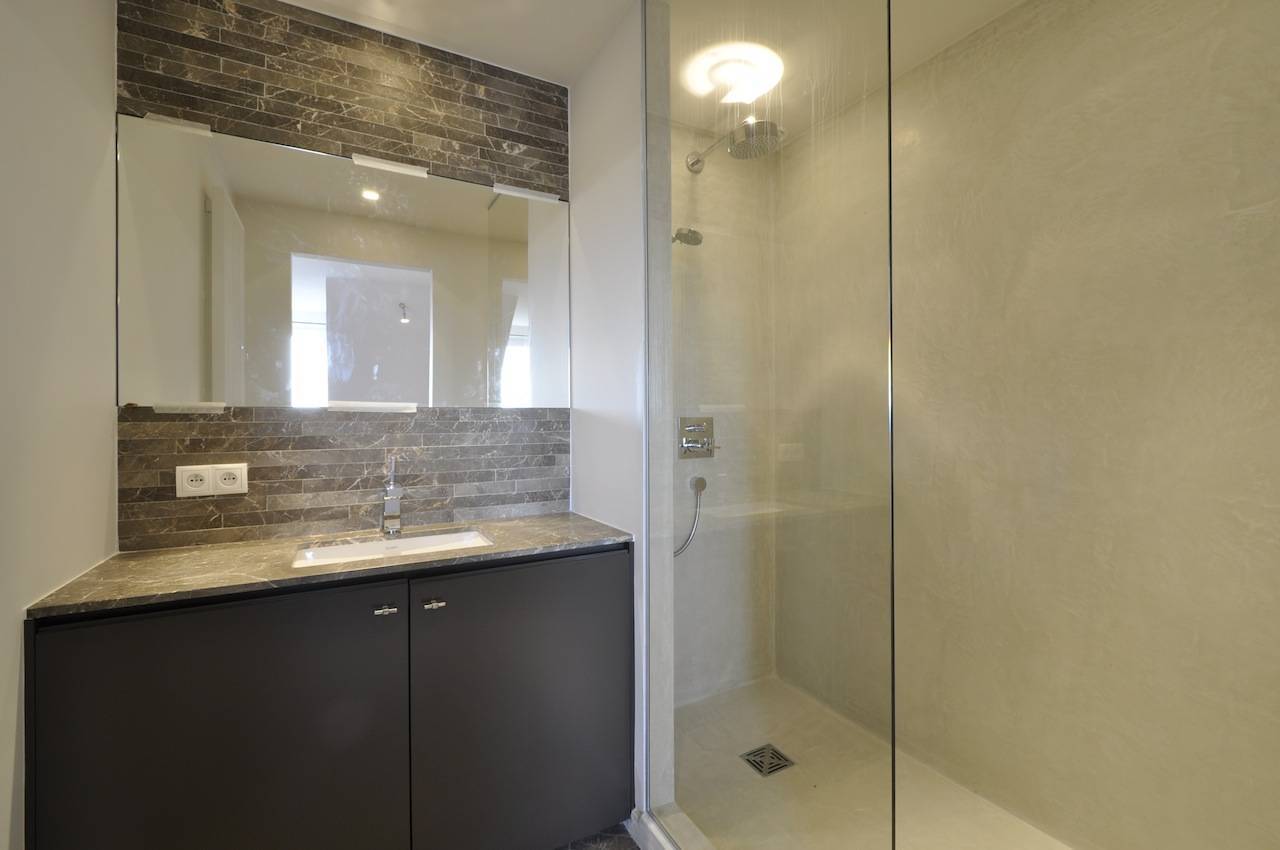 Composition: Entrée spacieuse avec toilette séparée. Débarras avec raccordement pour machine à laver et séchoir. 1 Chambre à coucher avec superbe terrasse. 1 Salle de bains attenante avec baignoire, double lavabo, douche et toilette, toutes en pierre naturelle.