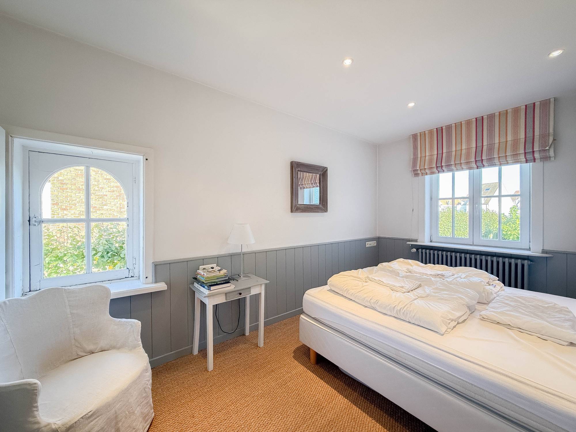 Au premier étage, vous trouverez trois chambres bien proportionnées, chacune avec des placards intégrés, une salle de bains séparée avec lave-linge et sèche-linge, ainsi qu'une salle de douche pratique. Le deuxième étage abrite une quatrième chambre spacieuse avec une salle de bains ouverte et des toilettes séparées.