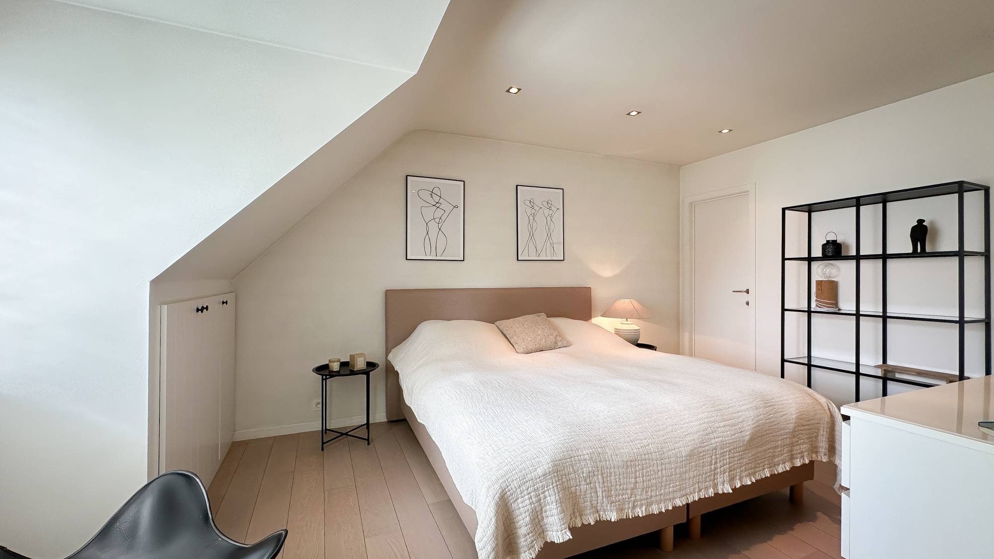 À l'étage supérieur, vous trouverez trois autres chambres supplémentaires. La chambre principale dispose d'un dressing séparé. Une salle de bains distincte avec douche, double lavabo et toilettes complète cet étage.