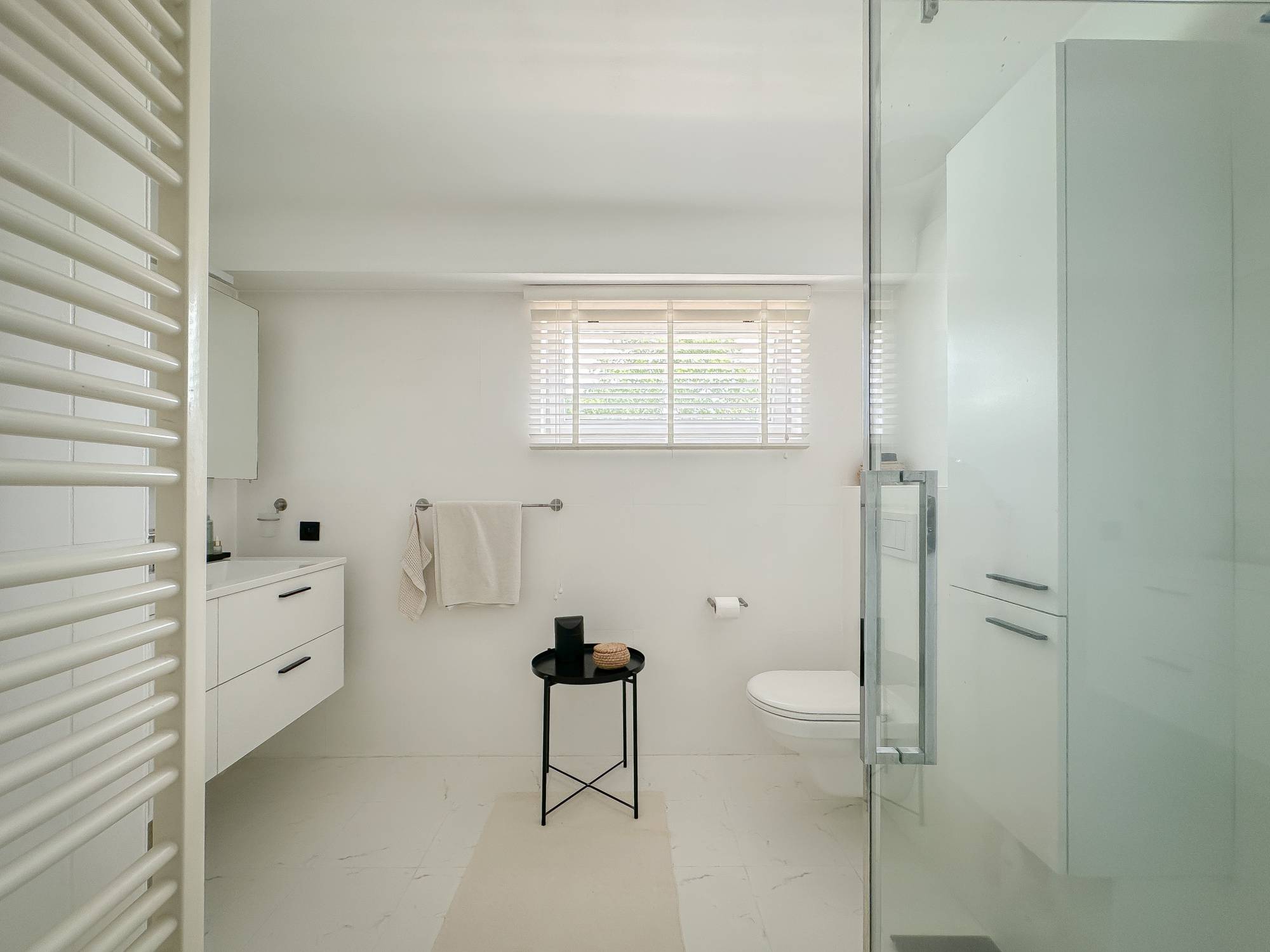 À l'entrée, vous trouverez un hall spacieux avec des toilettes pour invités et une garde-robe. Le salon lumineux mène à une terrasse particulièrement agréable et conviviale, idéale pour se détendre et profiter de l'environnement vert. La salle à manger est harmonieusement reliée à la cuisine séparée et spacieuse, qui est à la fois pratique et équipée de tout le confort moderne.