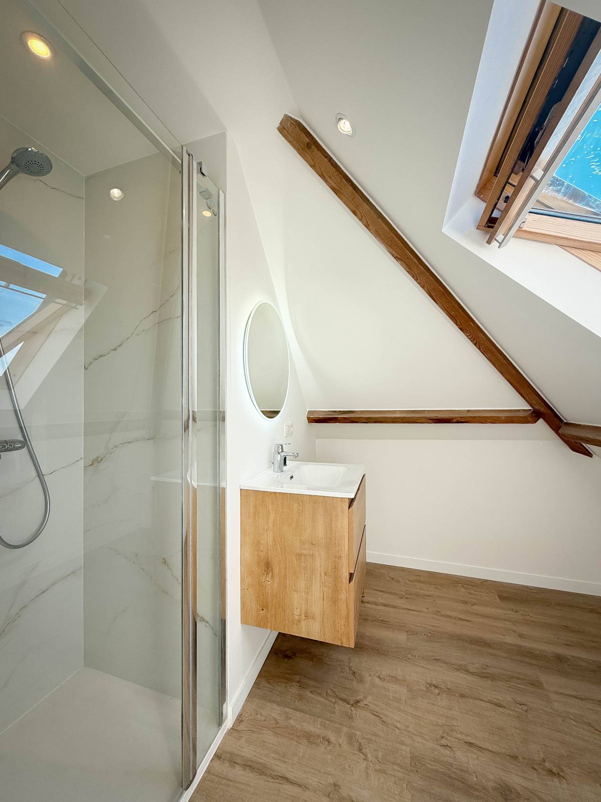 - Deuxième étage: Troisième chambre avec velux et une vue panoramique époustouflante, accompagnée de sa salle de douche attenante.