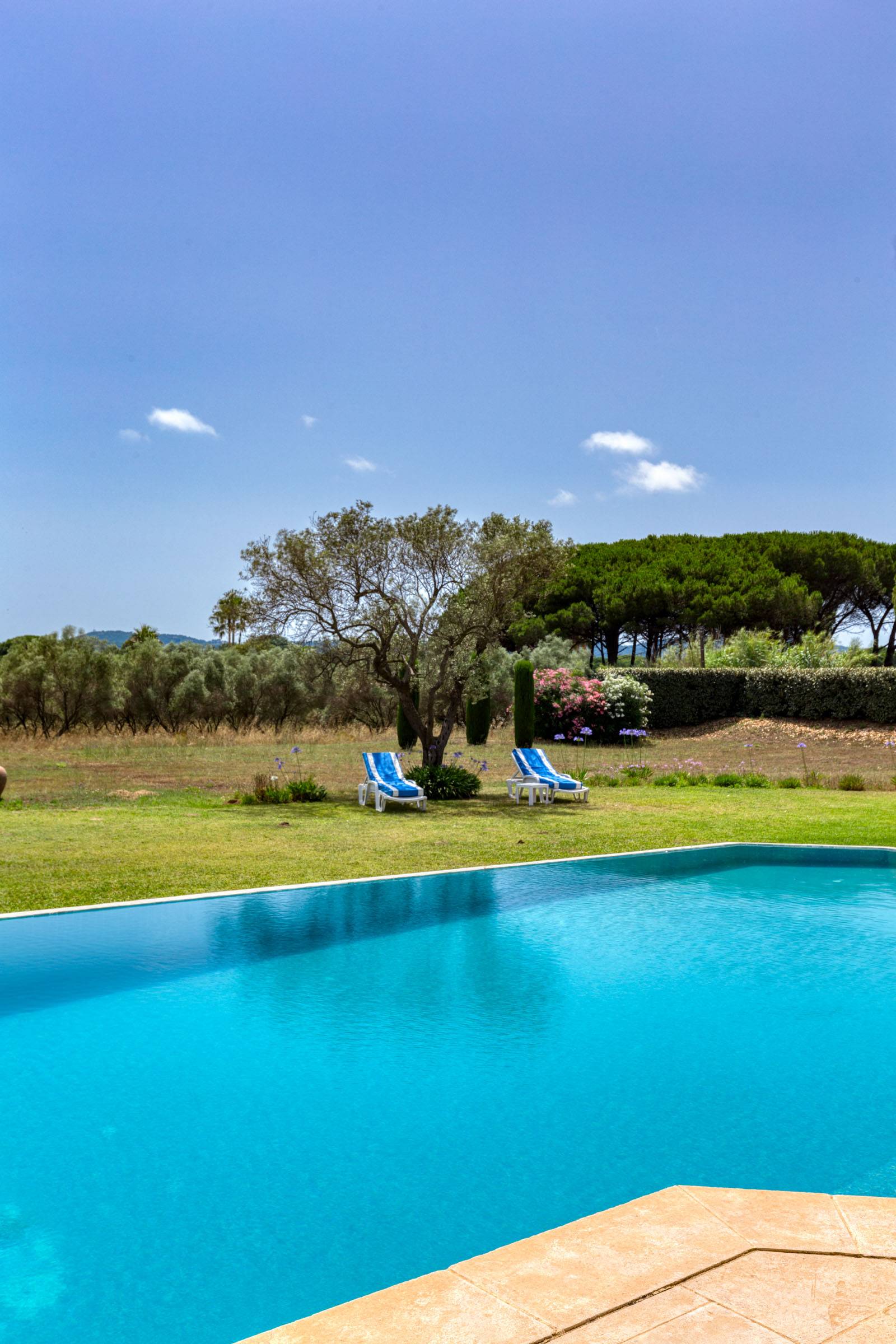 Cette magnifique villa offre une oasis de tranquillité et de luxe, située sur un vaste terrain de plus de 20.000 m². L'orientation sud assure un ensoleillement maximal tout au long de la journée, contribuant à une ambiance sereine et détendue.