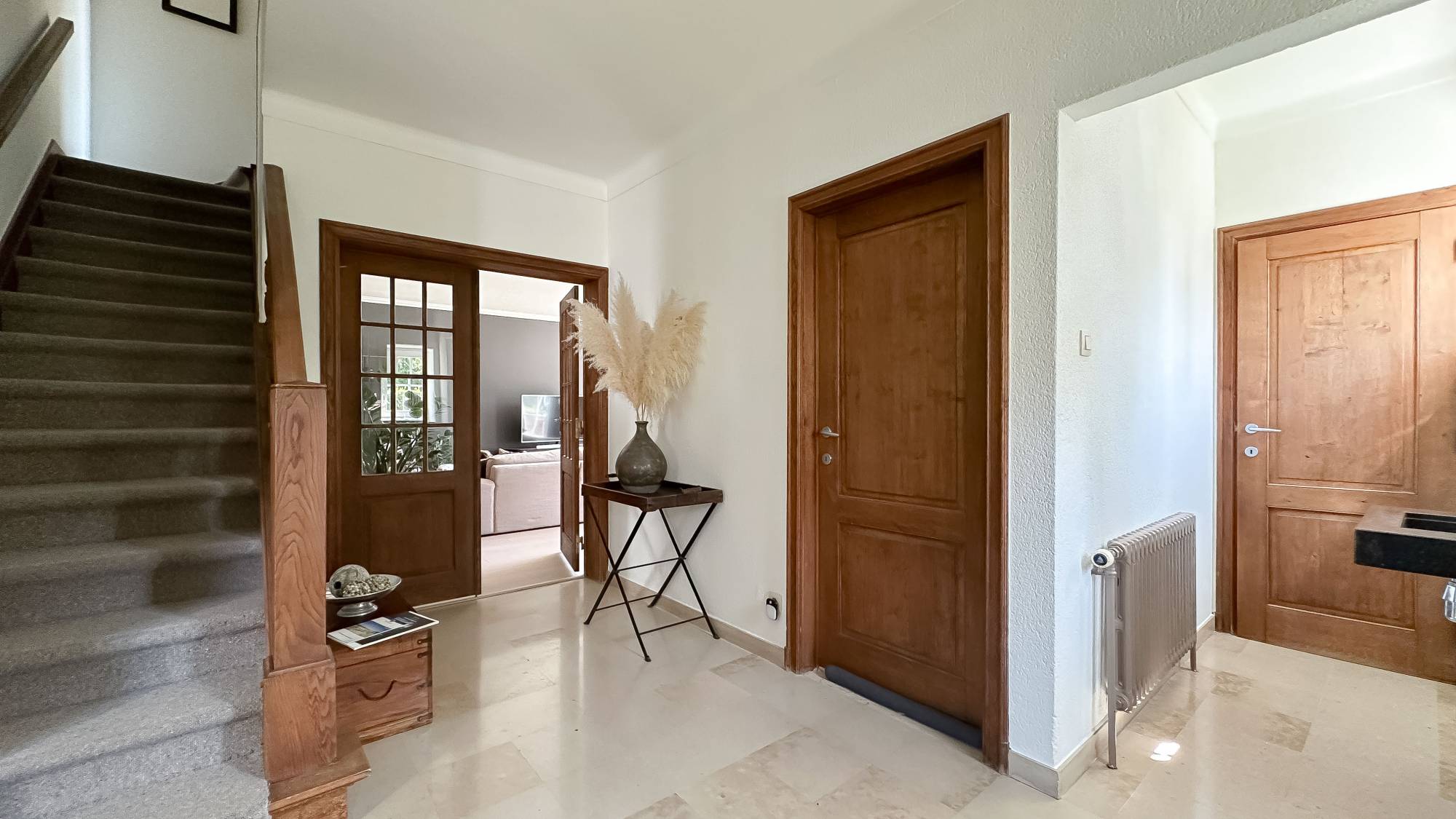 Composition: Grand hall d'entrée avec toilettes invités et espace vestiaire. Séjour très agréable, composé d'un coin salon cosy avec cheminée, salle à manger lumineuse et bureau. Terrasse ensoleillée, parfaitement orientée, donnant sur le beau jardin.