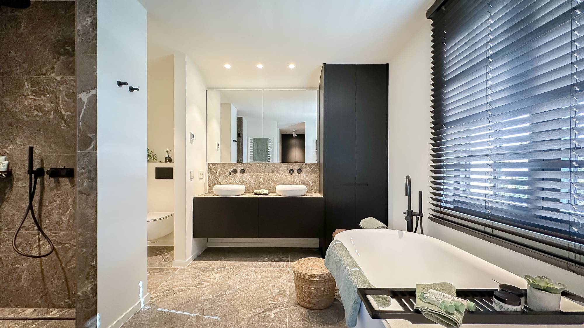 Cette villa luxueuse offre une combinaison parfaite de finitions modernes et d'espaces confortables, dans un cadre calme et prestigieux, à seulement quelques pas de la Boslaan et de la Kalfmolen. La villa se loue meublée.