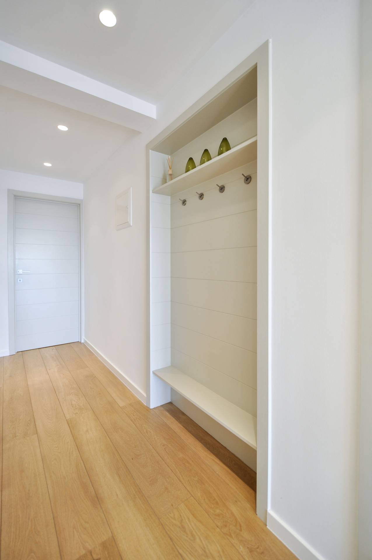 À l'arrière, il y a une grande chambre spacieuse avec placards. Il y a une salle de douche avec une belle douche à l'italienne. Espace pour machine à laver et sèche linge.