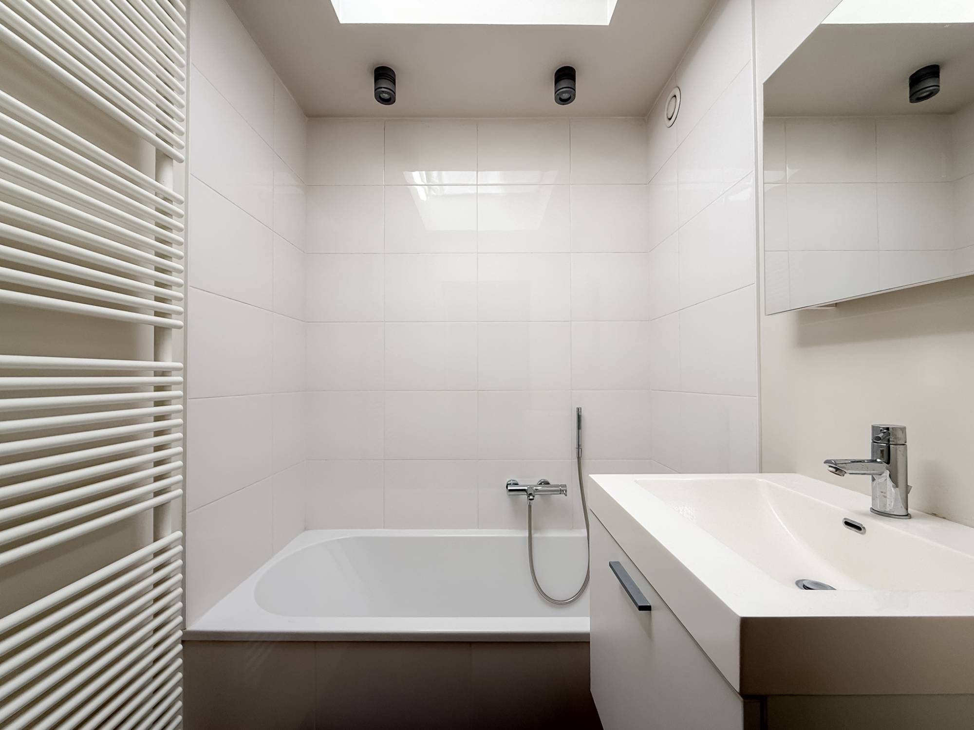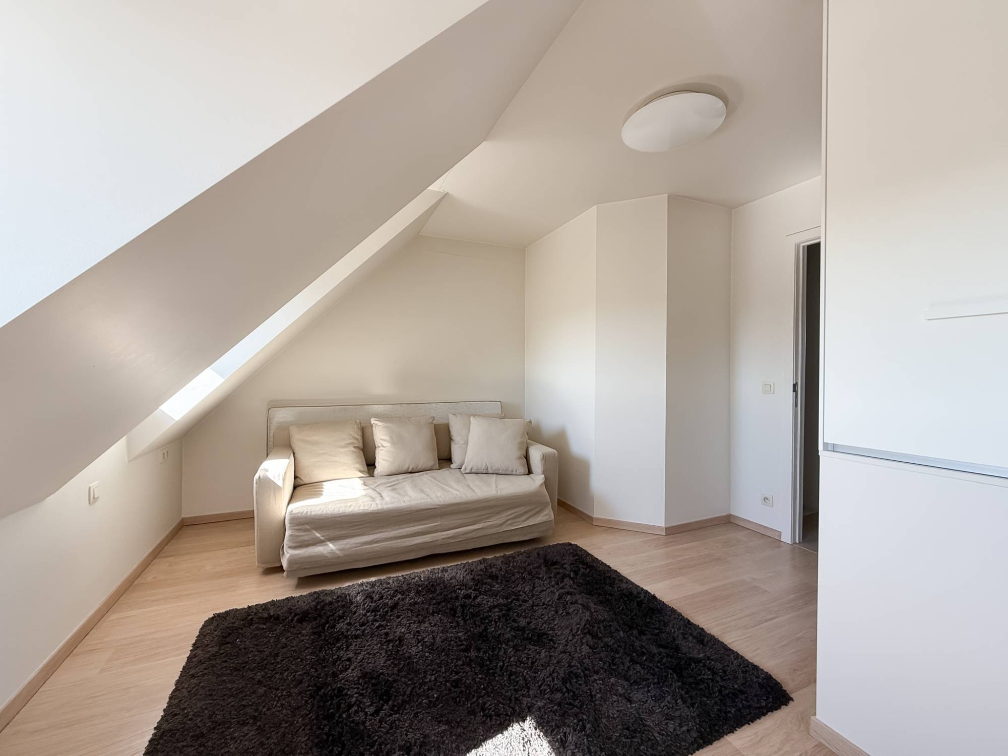 À l’étage, vous trouverez 2 chambres de bonne taille, une salle de bains et une salle de douche séparée. Une place de parking double (tandem) est disponible en option dans l’immeuble, dont une partie en garage fermé.