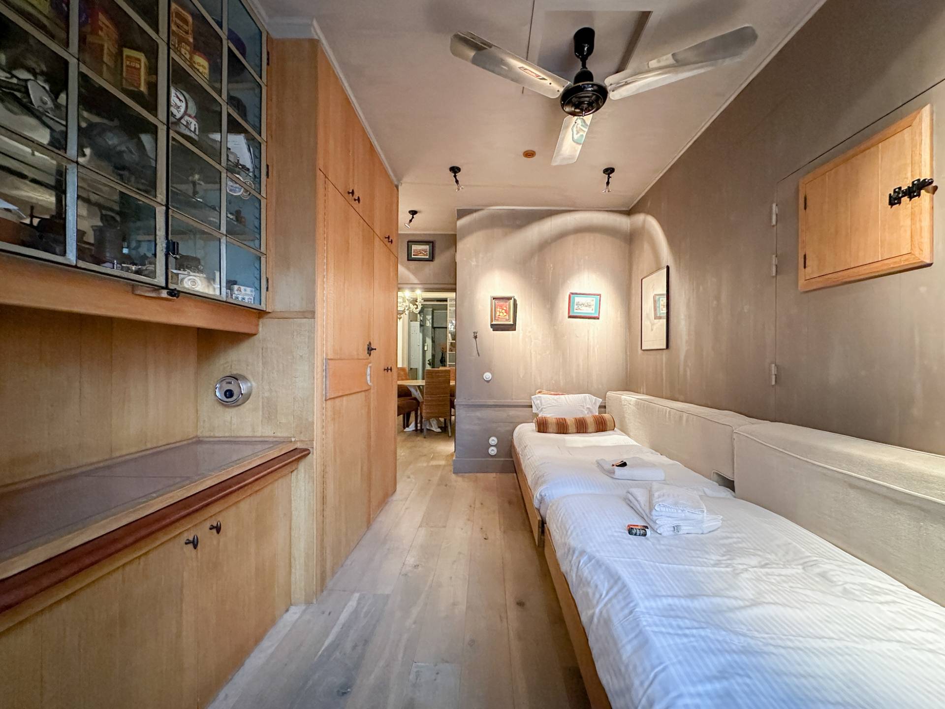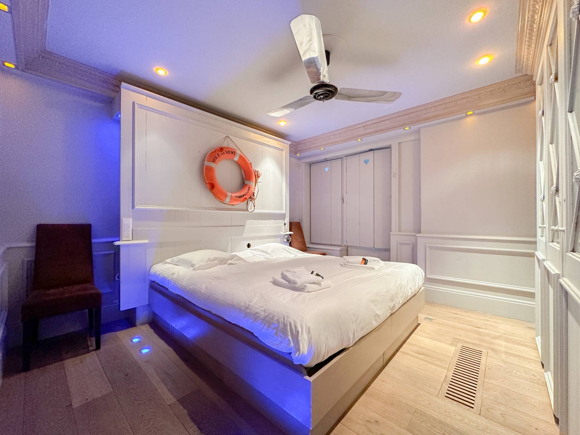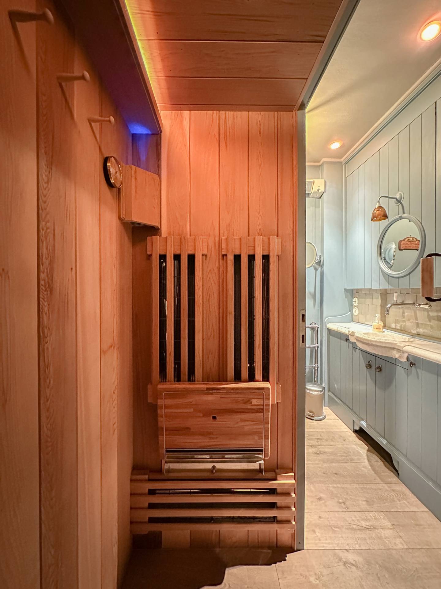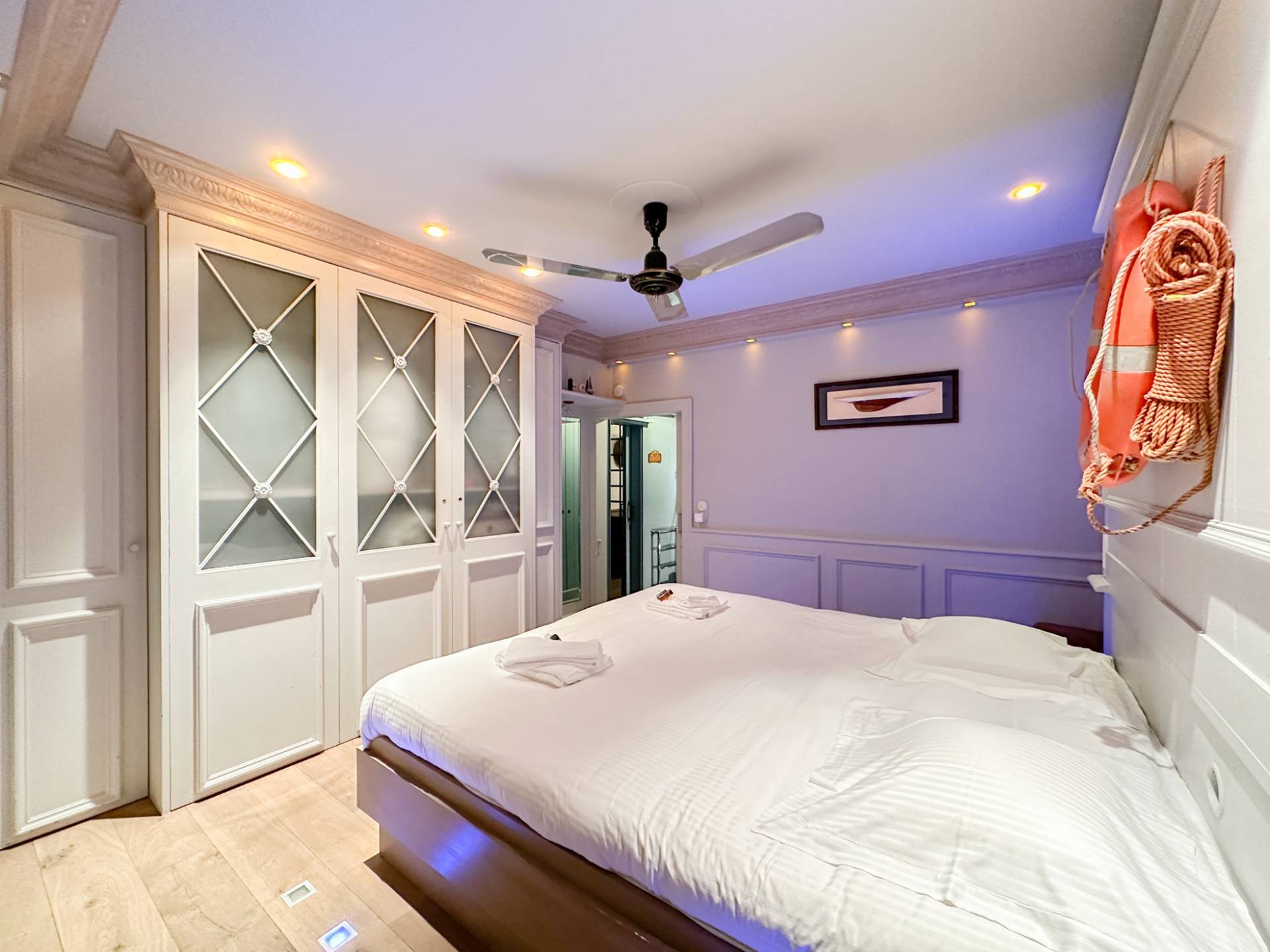 La chambre principale dispose d'une salle de bains avec lavabo, douche, sauna et toilettes. 2ème chambre spacieuse. Les deux chambres sont équipées de placards. Buanderie.
