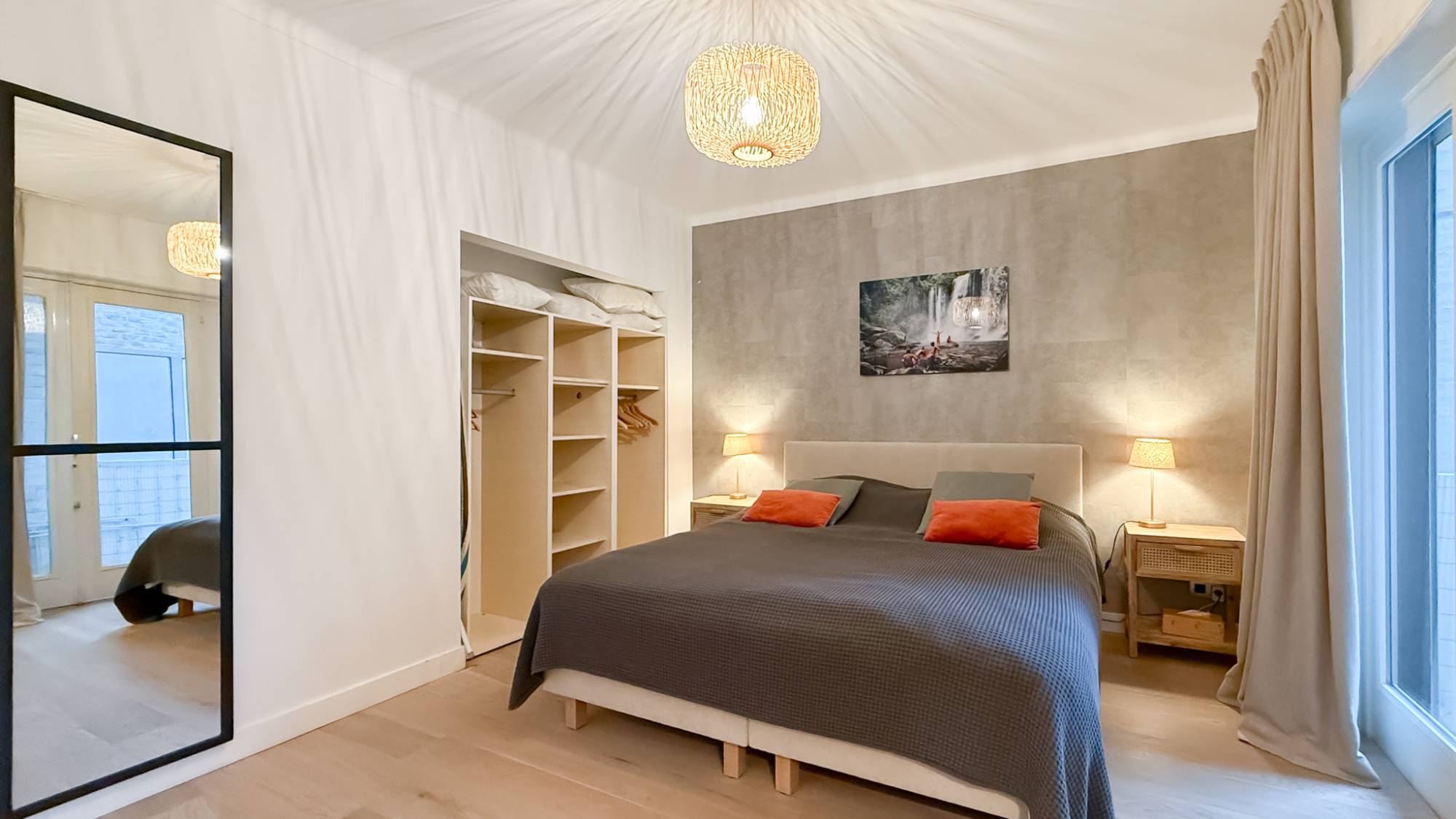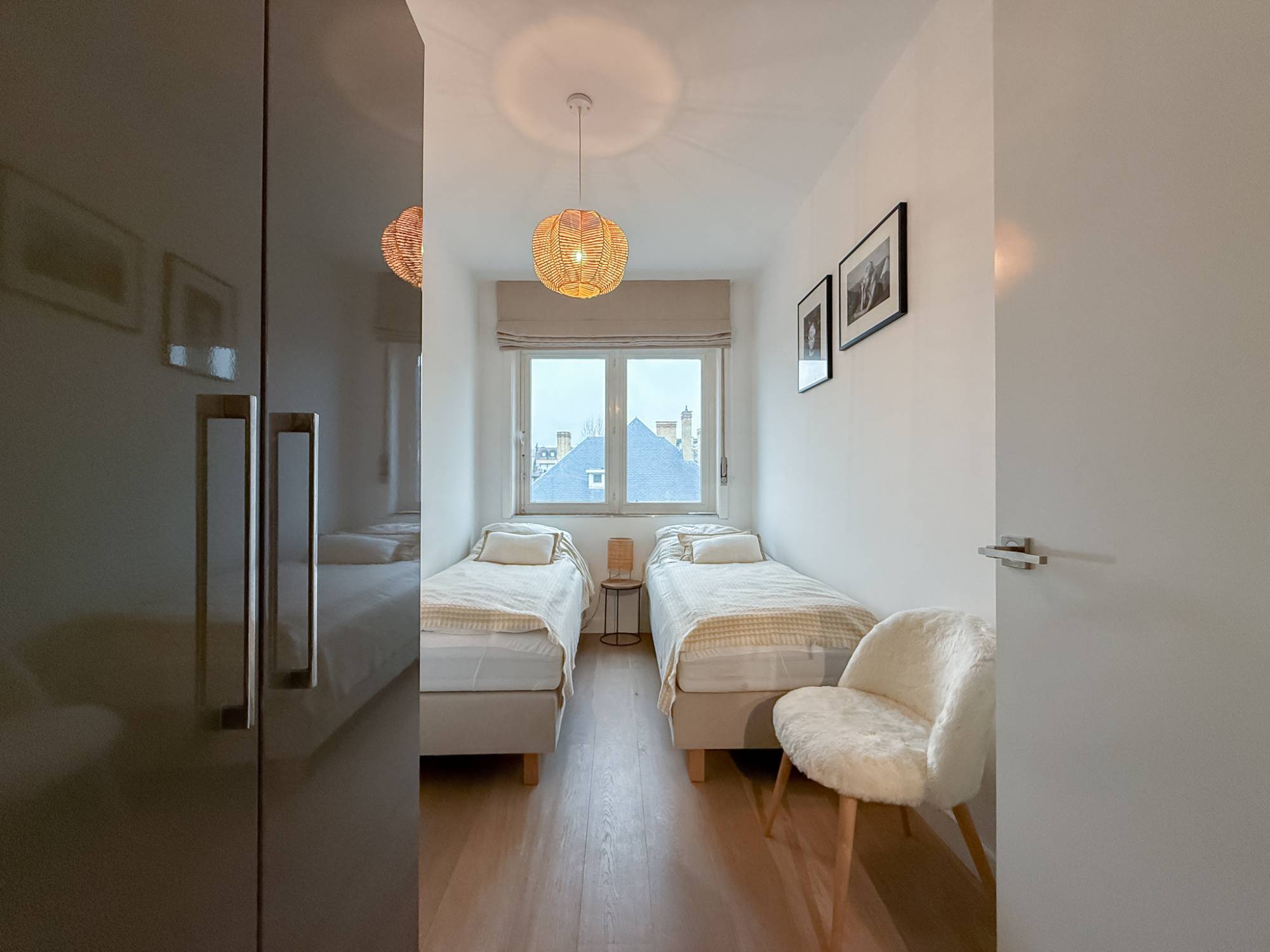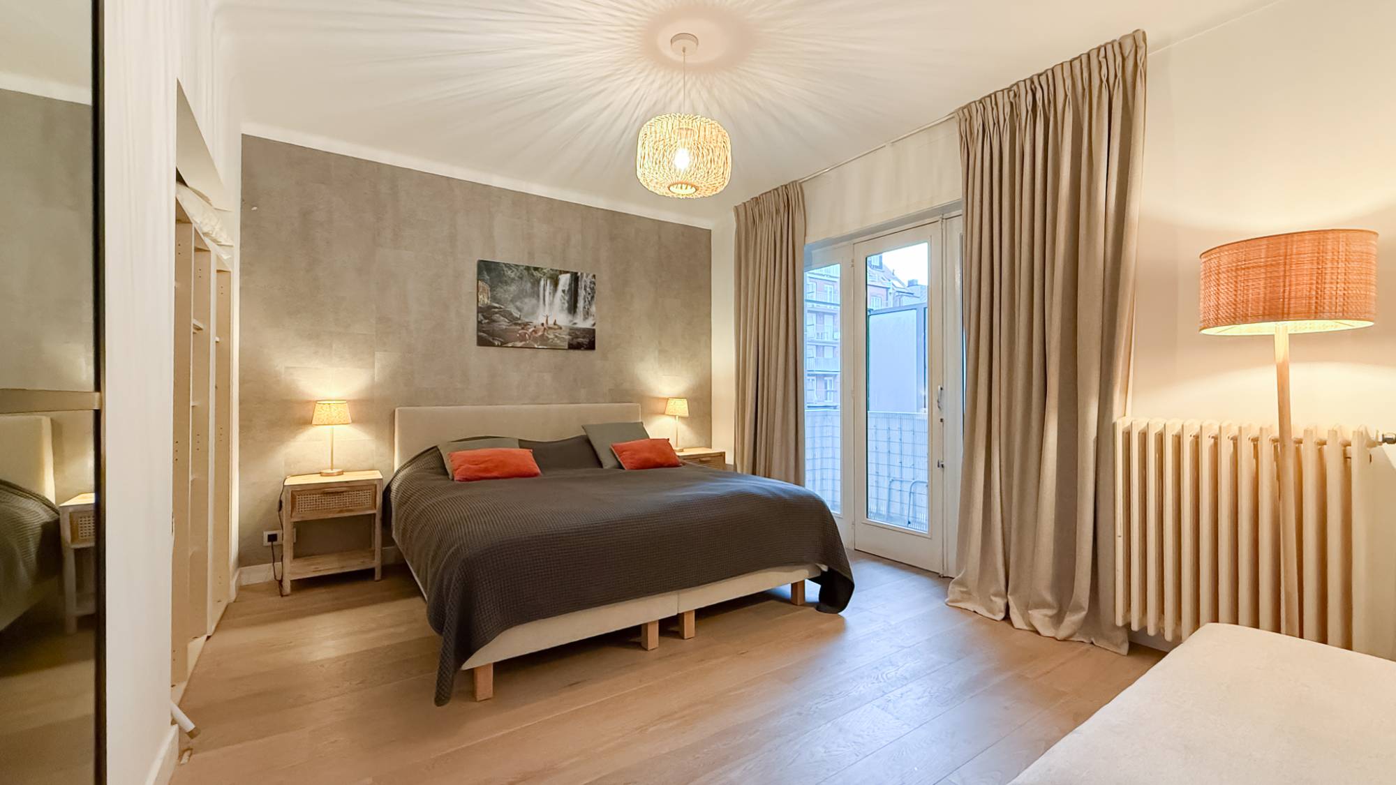 L’appartement comprend deux chambres, dont une spacieuse suite parentale à l’arrière avec accès à un balcon. La deuxième chambre est située à l’avant. L’appartement dispose également d’une salle de douche séparée.