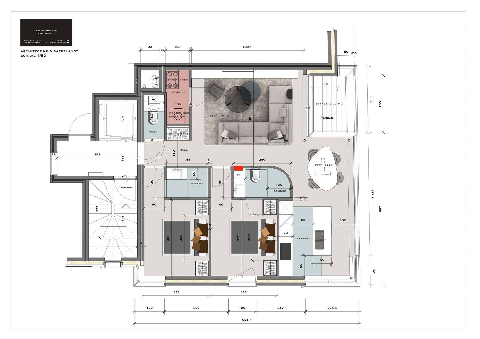 Composition: Hall d'entrée avec vestiaire et toilettes invités. Agréable séjour ouvrant sur la terrasse. Salle à manger attenante avec cuisine ouverte. Il y a deux chambres à coucher, chacune avec sa propre salle de douche, dont une avec toilettes. Débarras avec raccordement pour machine à laver et sèche-linge et une chaudière à condensation.