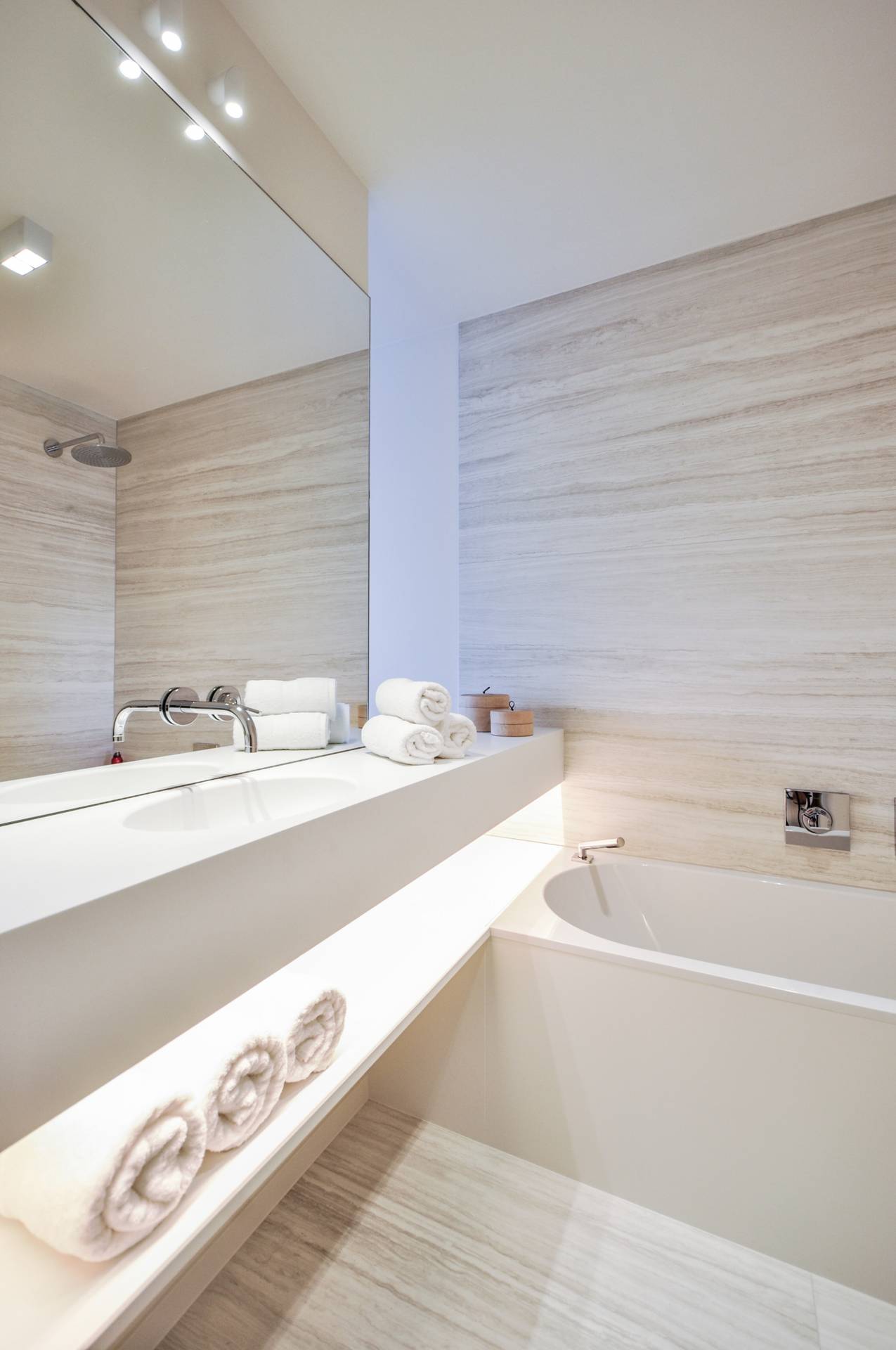 Il y a 2 grandes chambres avec de nombreux placards intégrés. Il y a une salle de bain joliment décorée avec lavabo, bain/douche. Espace pour placer une machine à laver. La 2ème chambre a sa propre salle de douche.