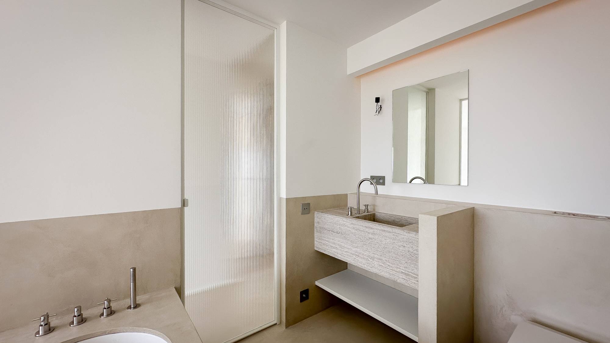 Il y a 2 chambres complètes avec des placards intégrés. Chaque chambre dispose d'une salle de bains ou d'une salle de douche attenante, finie en pierre naturelle et équipée de robinets Vola.