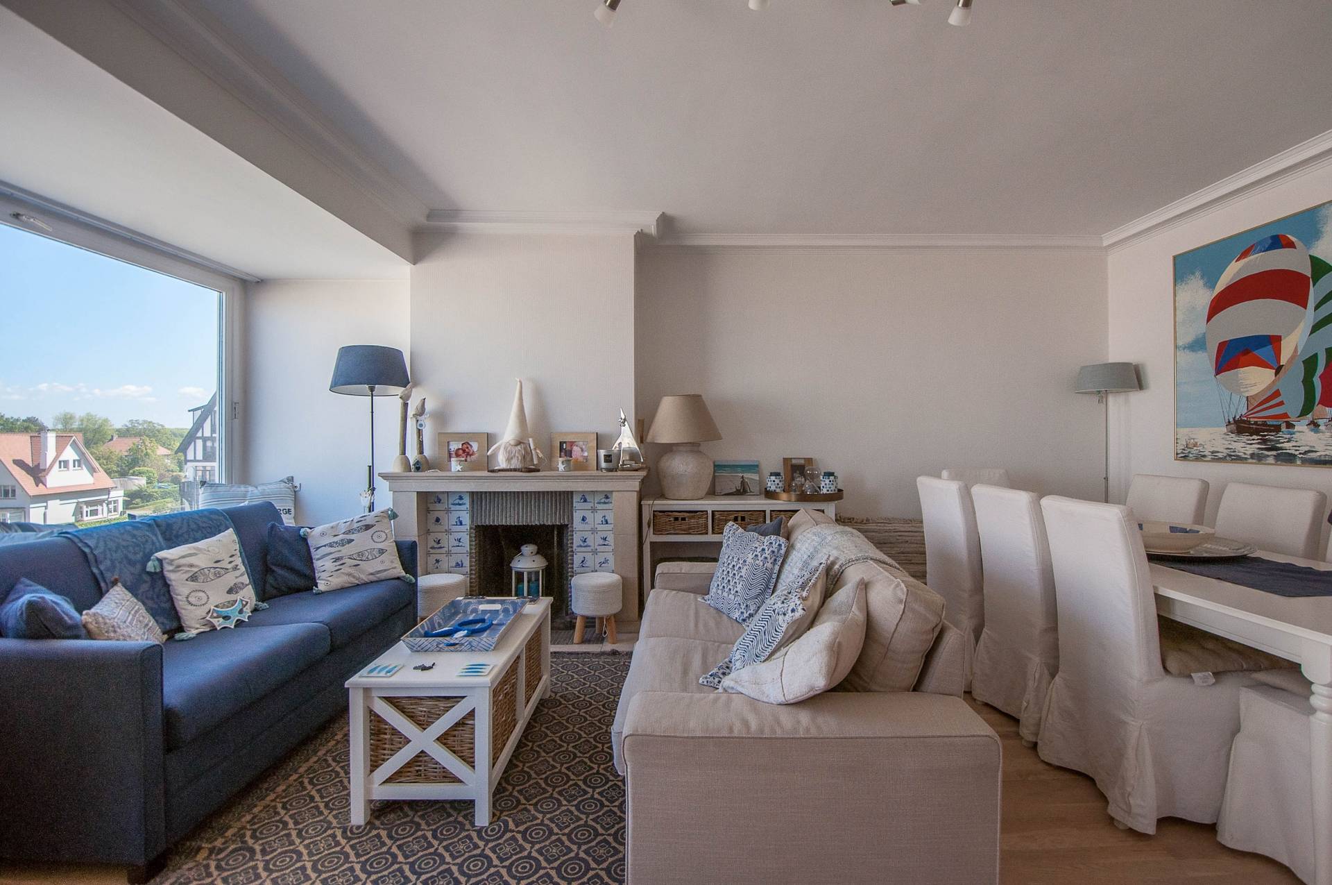 Composition: Hall d'entrée spacieux avec toilettes invités et vestiaire. Séjour qui s'ouvre sur une terrasse avec vue sur la Place Albert, la mer et les villas du Zoute. Cuisine séparée.