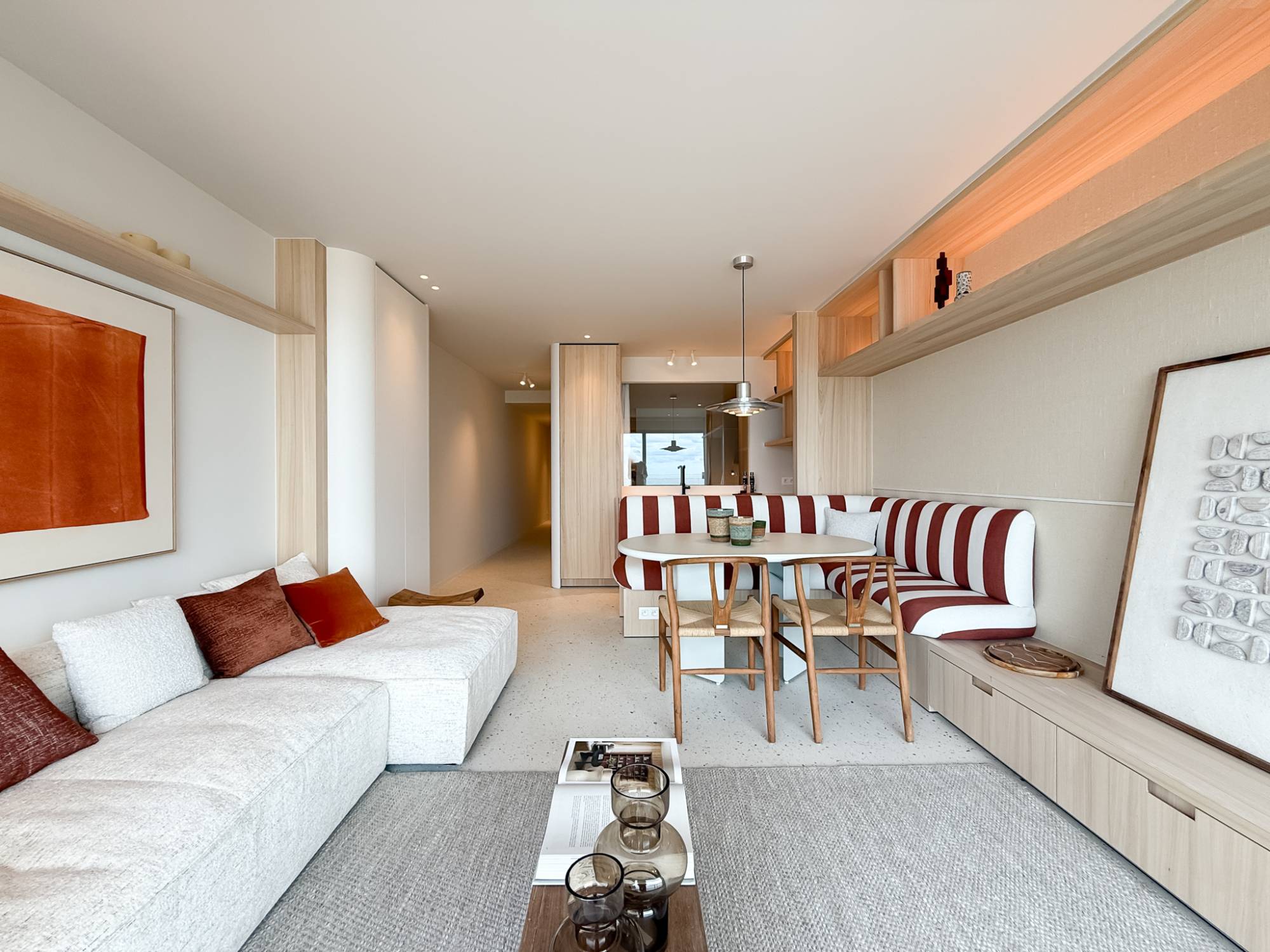 Au cœur du Zoute, à deux pas de la place Albert et de la digue piétonne, ce prestigieux appartement allie avec aisance soleil, espace et luxe. Le séjour lumineux et spacieux s’ouvre sur une terrasse ensoleillée offrant une vue mer incomparable – l’endroit idéal pour se détendre.
