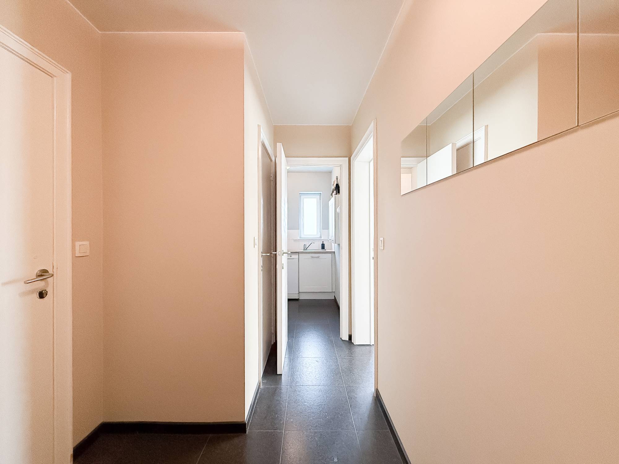 Le bien offre un agencement pratique et agréable avec un hall d’entrée et des toilettes invités. La cuisine entièrement équipée s’ouvre sur un espace de vie lumineux, où l’orientation en angle permet une belle luminosité et une sensation d’espace.