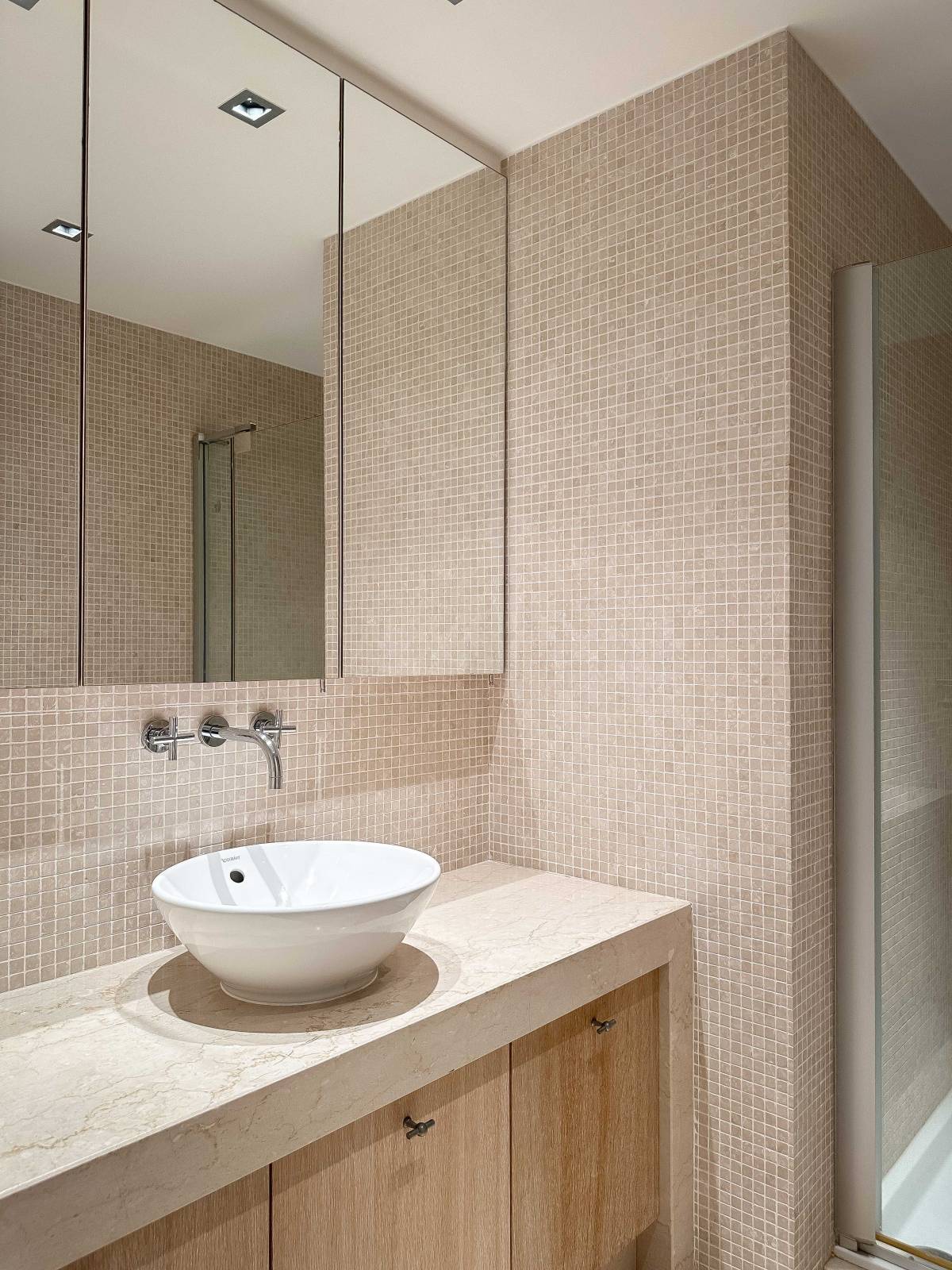 Les trois chambres spacieuses donnent sur une terrasse ensoleillée à l'arrière, où vous pourrez vous détendre en toute tranquillité. La chambre principale est équipée d'un dressing et d'une salle de bains luxueuse avec double lavabo, baignoire et toilettes. Une deuxième salle de douche dispose d'un élégant meuble lavabo et d'une grande douche à l'italienne.