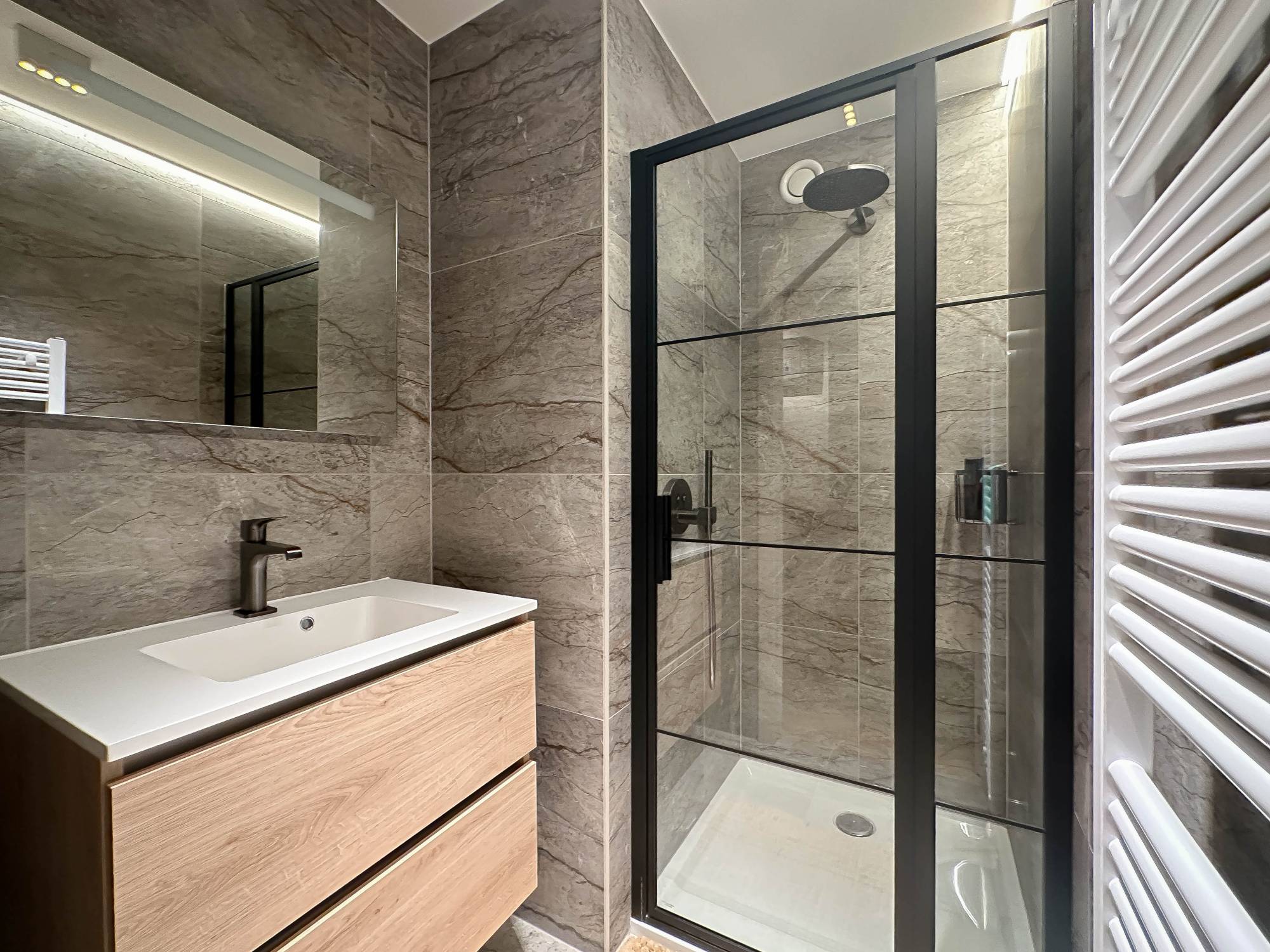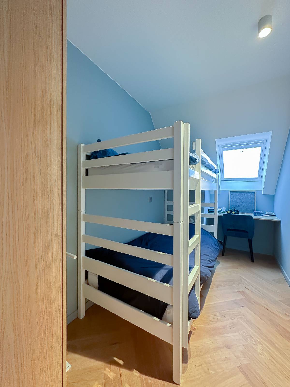 À l'étage, on trouve 3 chambres, dont 2 chambres complètes avec des placards intégrés. Deux salles de douche luxueusement aménagées complètent l'ensemble.