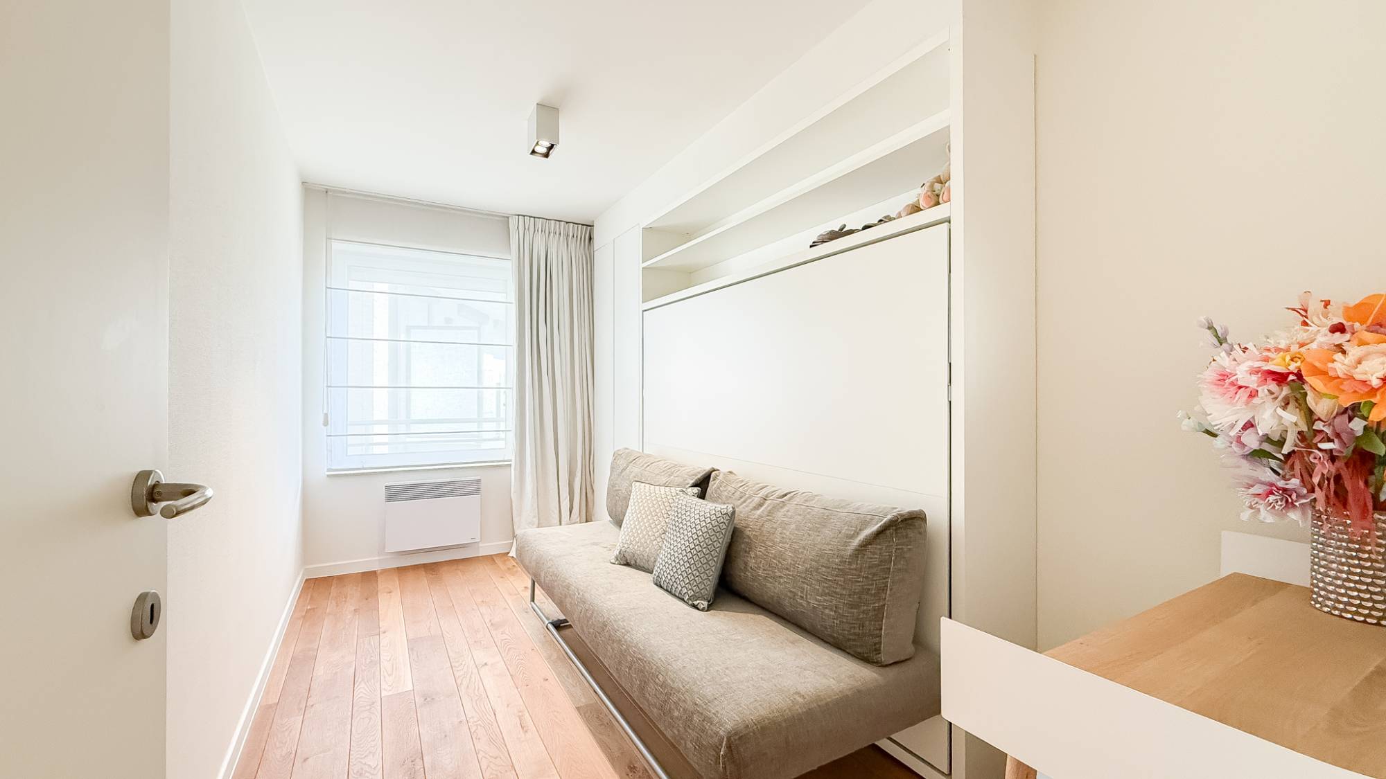 Cet appartement baigné de lumière se distingue par sa belle largeur de façade, son excellente orientation et ses vues dégagées, sublimées par une agréable vue latérale sur la mer sur le Royal Belgium Sailing Club de Duinbergen. Une adresse recherchée où se conjuguent parfaitement lumière, espace et qualité de situation en bord de mer.