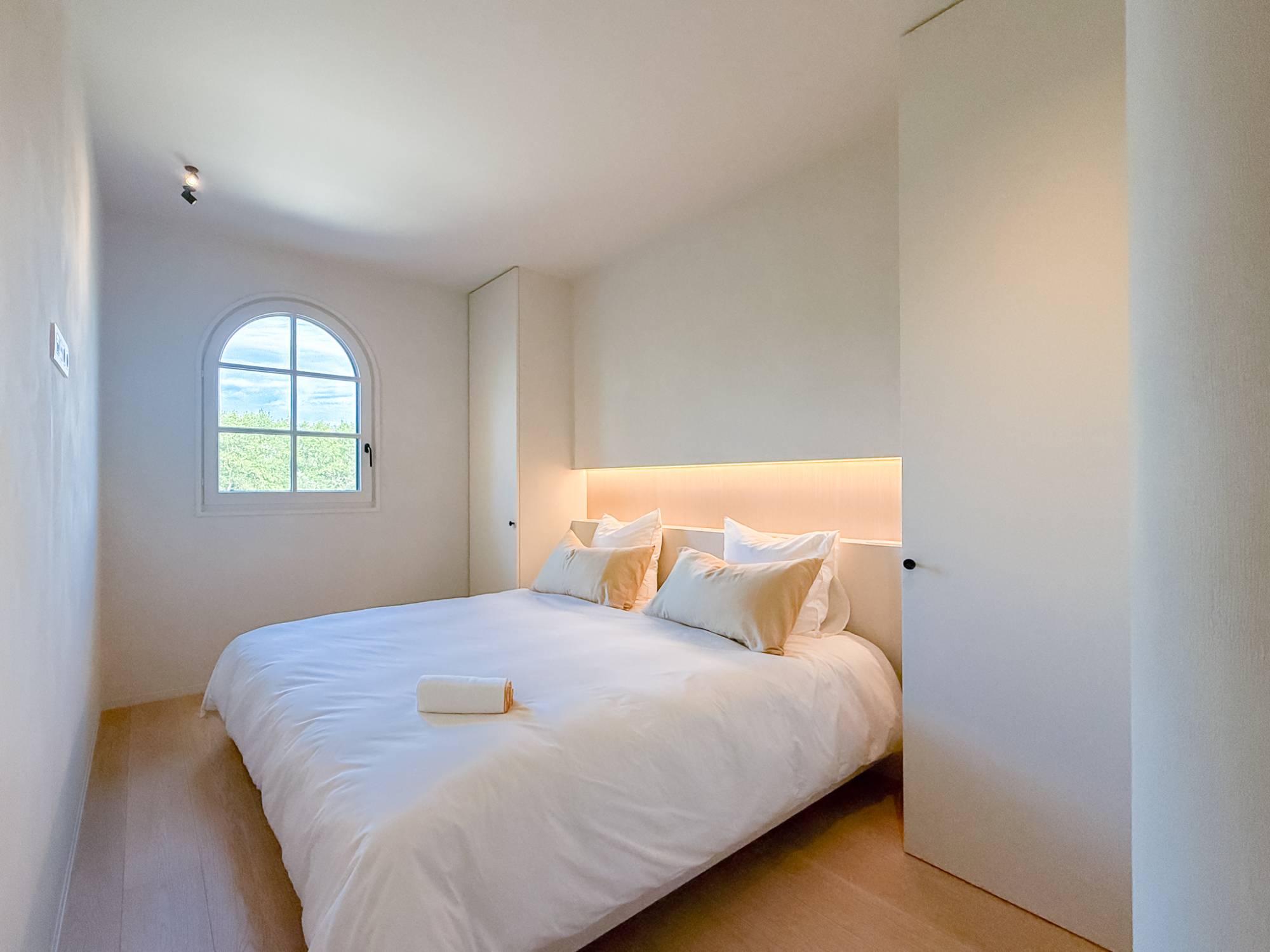 La chambre principale dispose d'un dressing et d'une salle de bains privative, équipée d'une douche, d'un lavabo et de toilettes, et donne également accès à la terrasse ensoleillée. La deuxième chambre spacieuse dispose d'une salle de douche privative et offre un accès à la terrasse arrière, tandis que la troisième chambre possède également sa propre salle de douche. Toutes les chambres sont équipées de placards intégrés pour un confort et un espace de rangement optimaux.