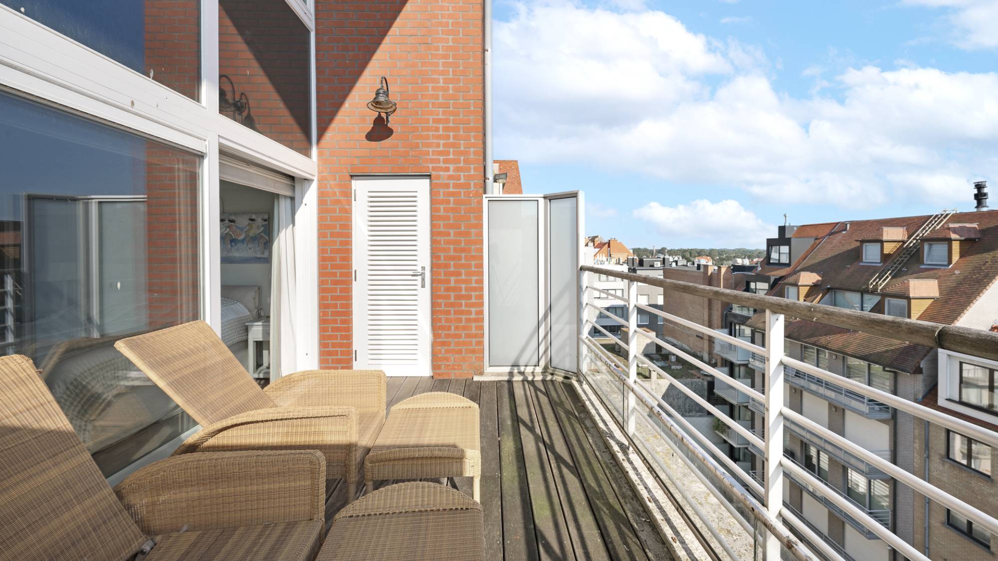 Appartement mezzanine exclusif (201m²) avec deux terrasses ensoleillées, situé dans une résidence prestigieuse sur la digue au cœur du Zoute.
