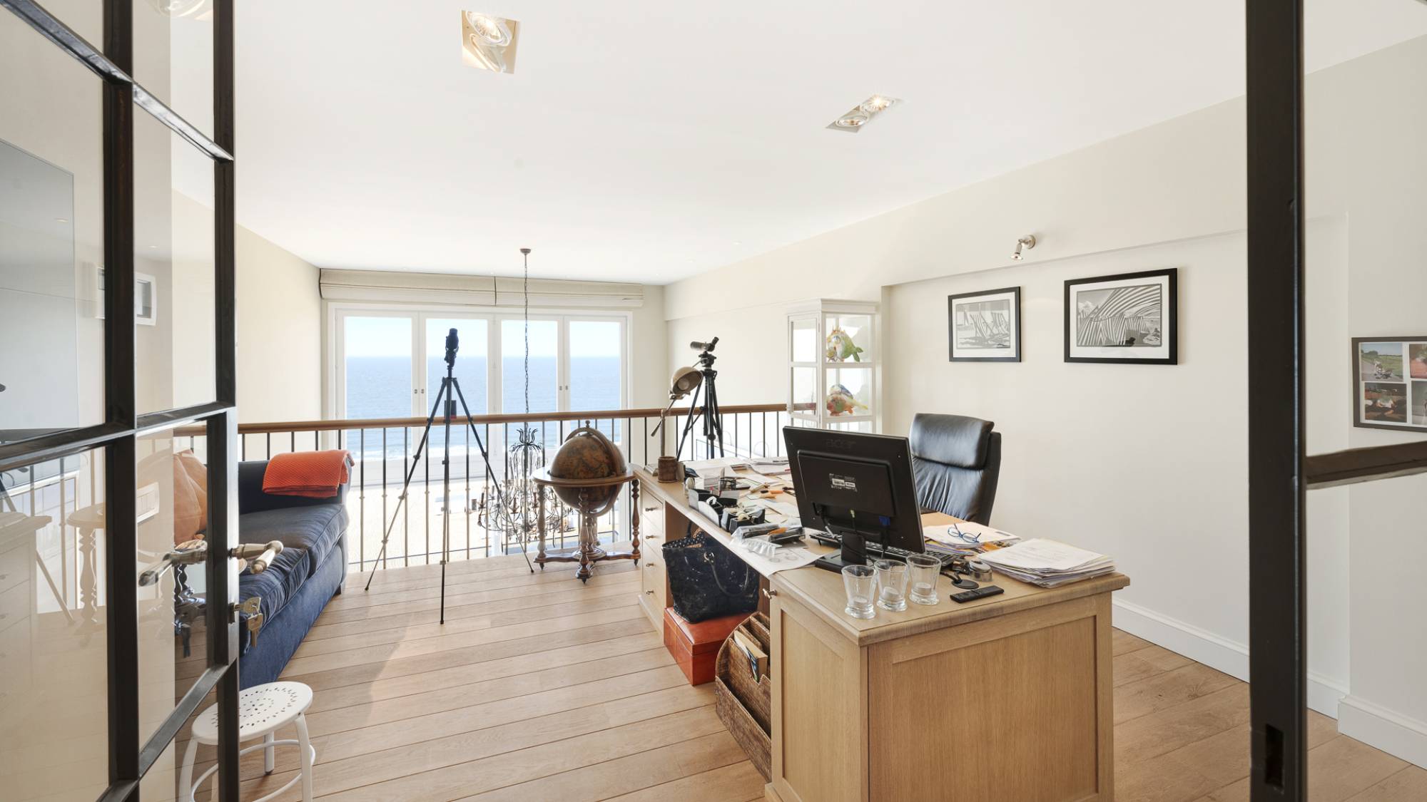 À l'étage mezzanine, vous trouverez un bureau élégant avec des placards intégrés, vous permettant de profiter à nouveau de la vue exceptionnelle sur la mer. Il y a également des toilettes séparées, un espace de rangement supplémentaire et une buanderie parfaitement agencée. À l'arrière, deux chambres supplémentaires de taille généreuse sont équipées de placards intégrés, chacune avec sa salle de bain ou salle de douche attenante.
