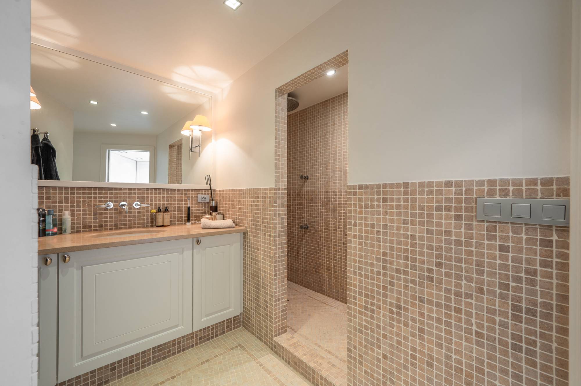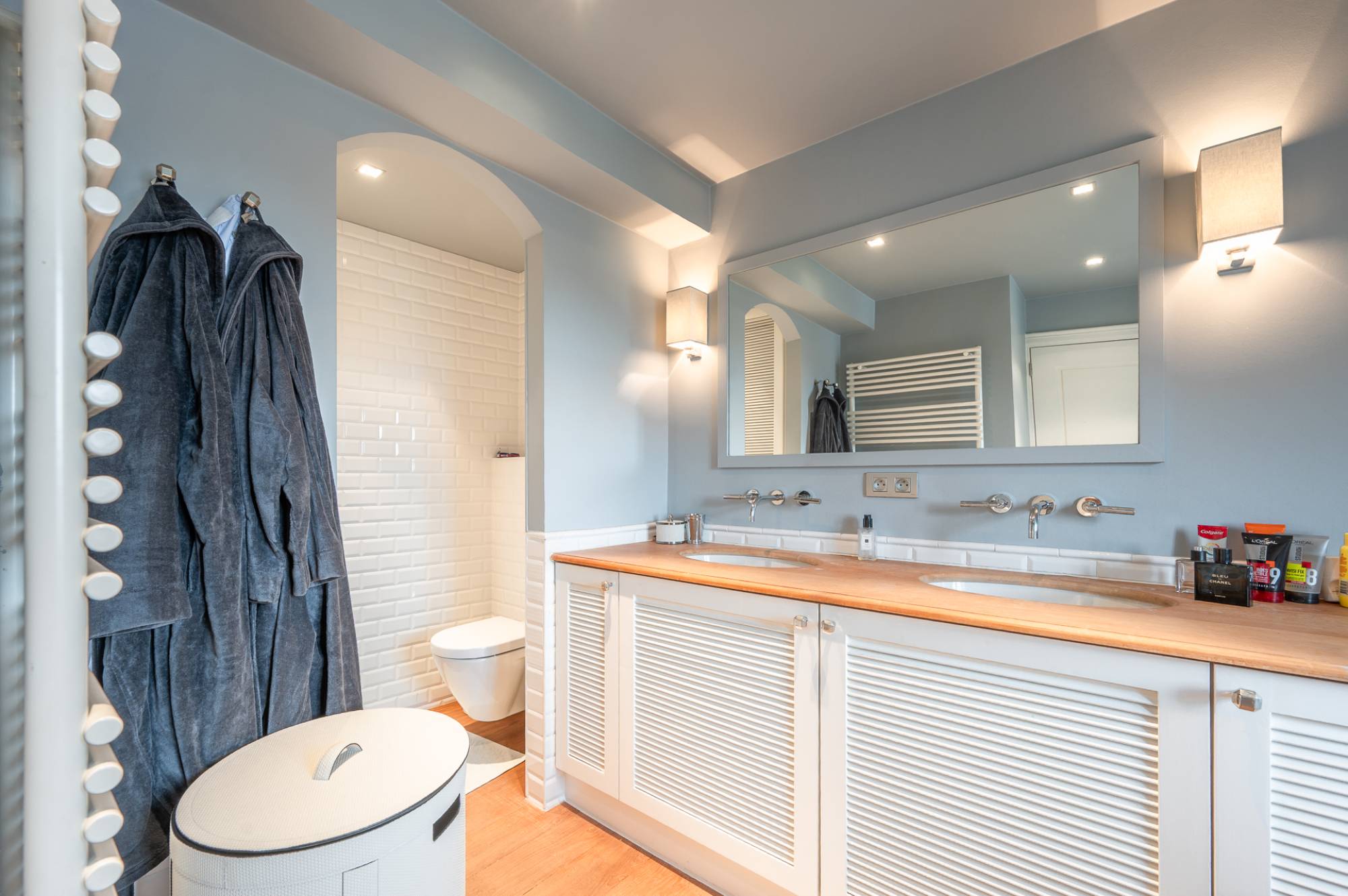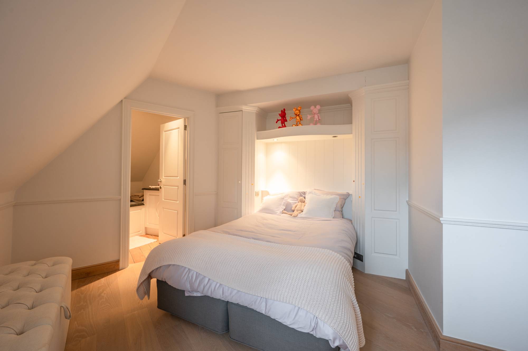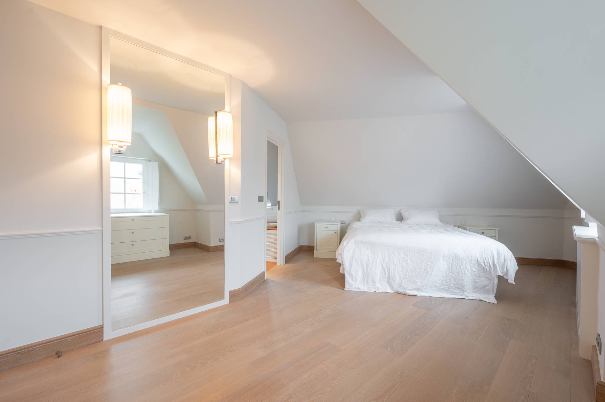 À l’étage, 2 grandes chambres supplémentaires, chacune avec de nombreux placards intégrés et leur propre salle de bains — idéales pour accueillir famille ou invités.