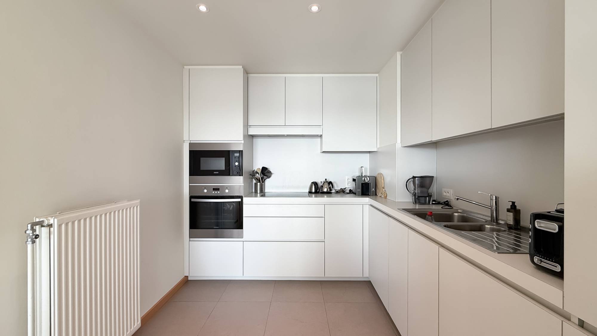 Cet appartement unique bénéficie d’une façade exceptionnellement large et d’une orientation plein sud, et est idéalement situé sur la prestigieuse Kustlaan, à hauteur de la place Albert.