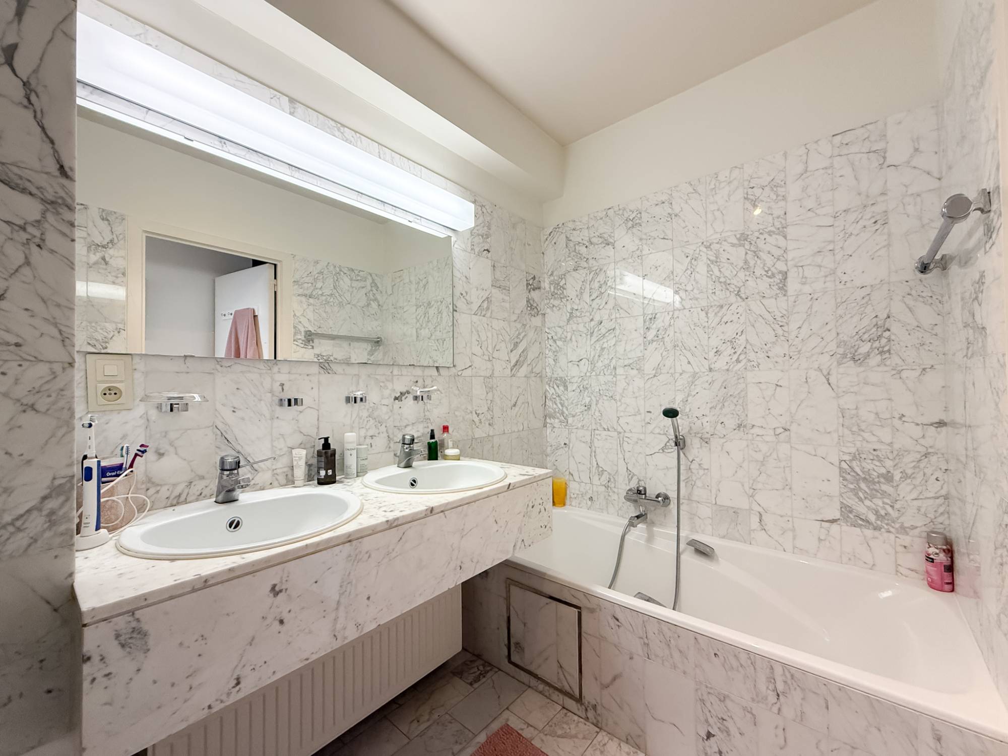 Situé au troisième étage d’une résidence soignée, l’appartement occupe l’entièreté de l’étage, offrant ainsi une grande intimité et une belle sensation d’espace.