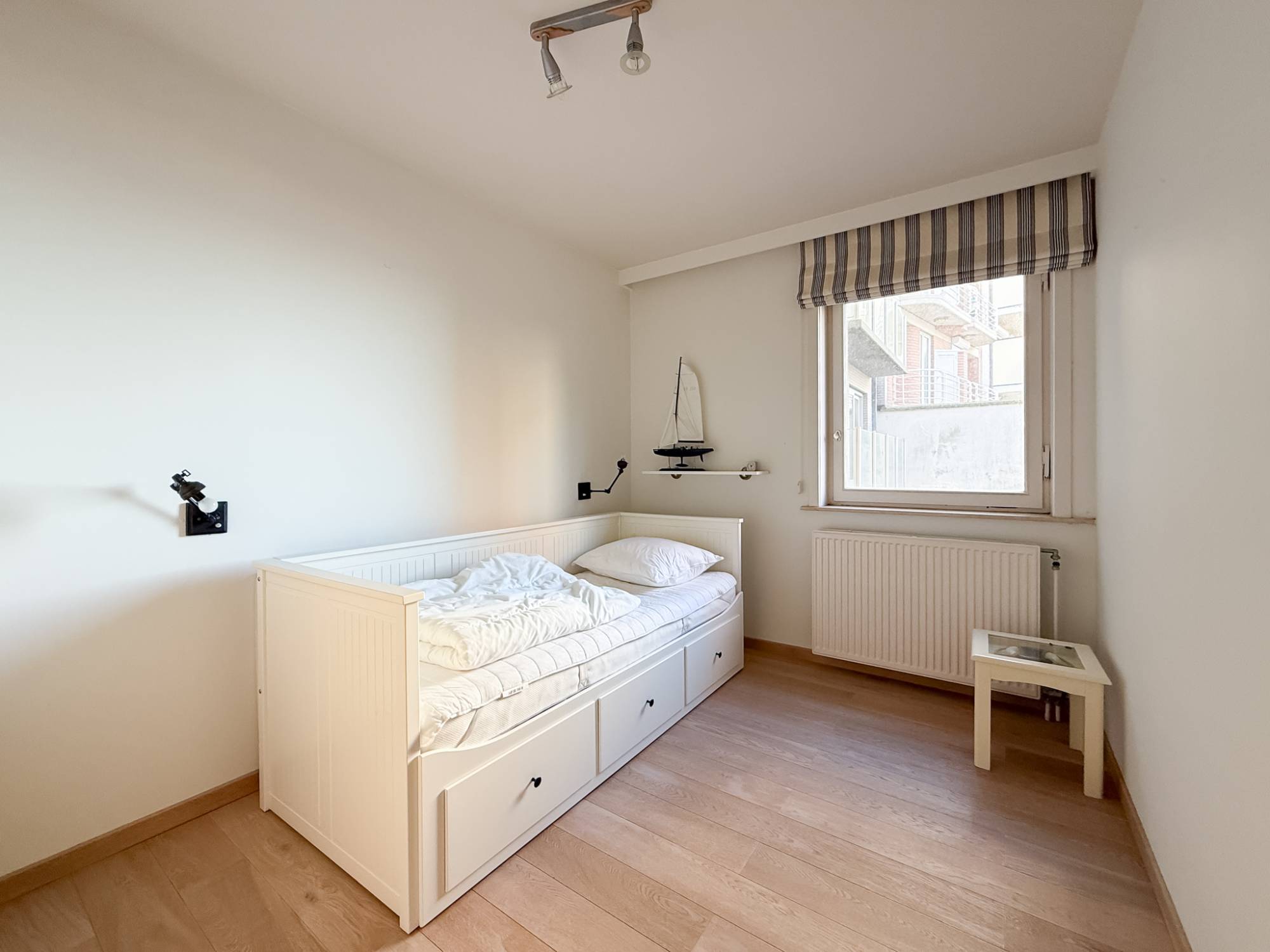 Grâce à sa large façade, l’appartement dispose d’une spacieuse terrasse ensoleillée sur toute la largeur, avec une vue dégagée sur les élégantes villas du Zoute. La surface habitable est de 125 m² et comprend trois chambres à coucher de belles dimensions, toutes bénéficiant de lumière naturelle.