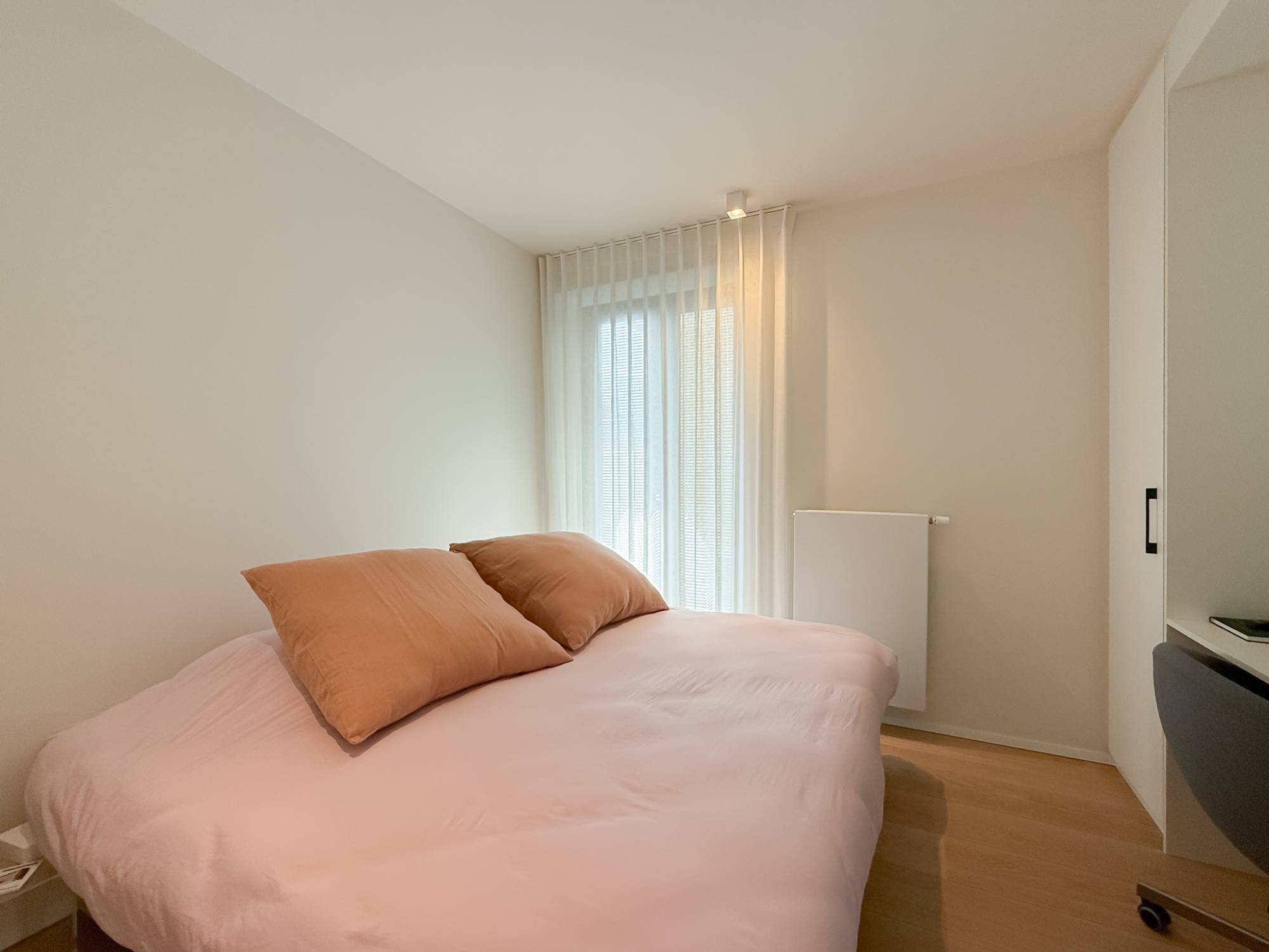 La cuisine ouverte avec coin petit-déjeuner est équipée d’appareils haut de gamme et s’intègre harmonieusement à l’espace de vie. Un système Sonos intégré diffuse une ambiance sonore raffinée dans tout l’appartement.