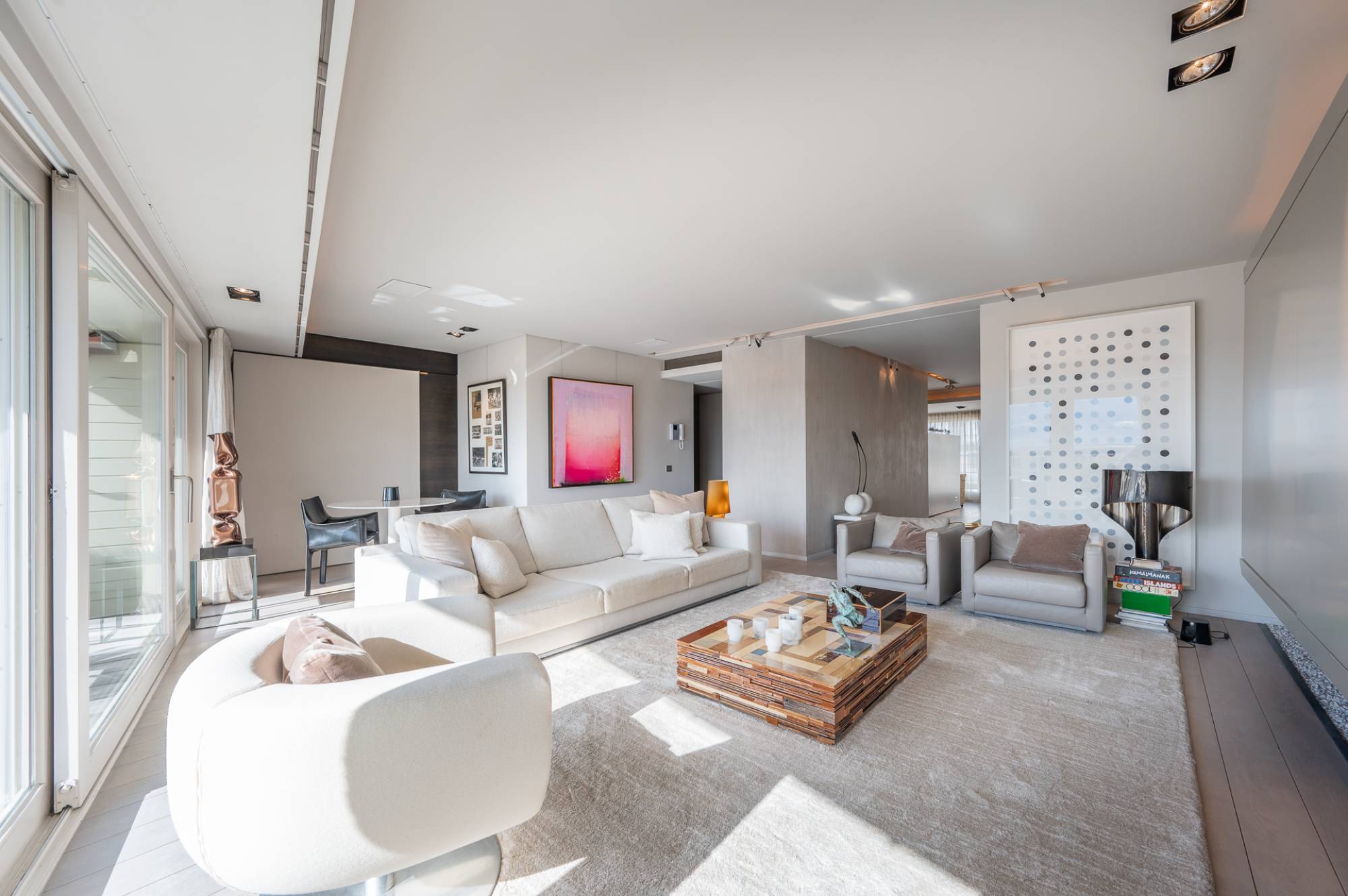Un double garage (box) INCLUS se trouve à proximité immédiate. L'appartement en duplex est unique en raison de son niveau de finition exceptionnel, avec l'oeil pour le détail! Il n'y a qu'un seul appartement par étage, ce qui garantit l'intimité nécessaire. Climatisation intégrée et domotique.