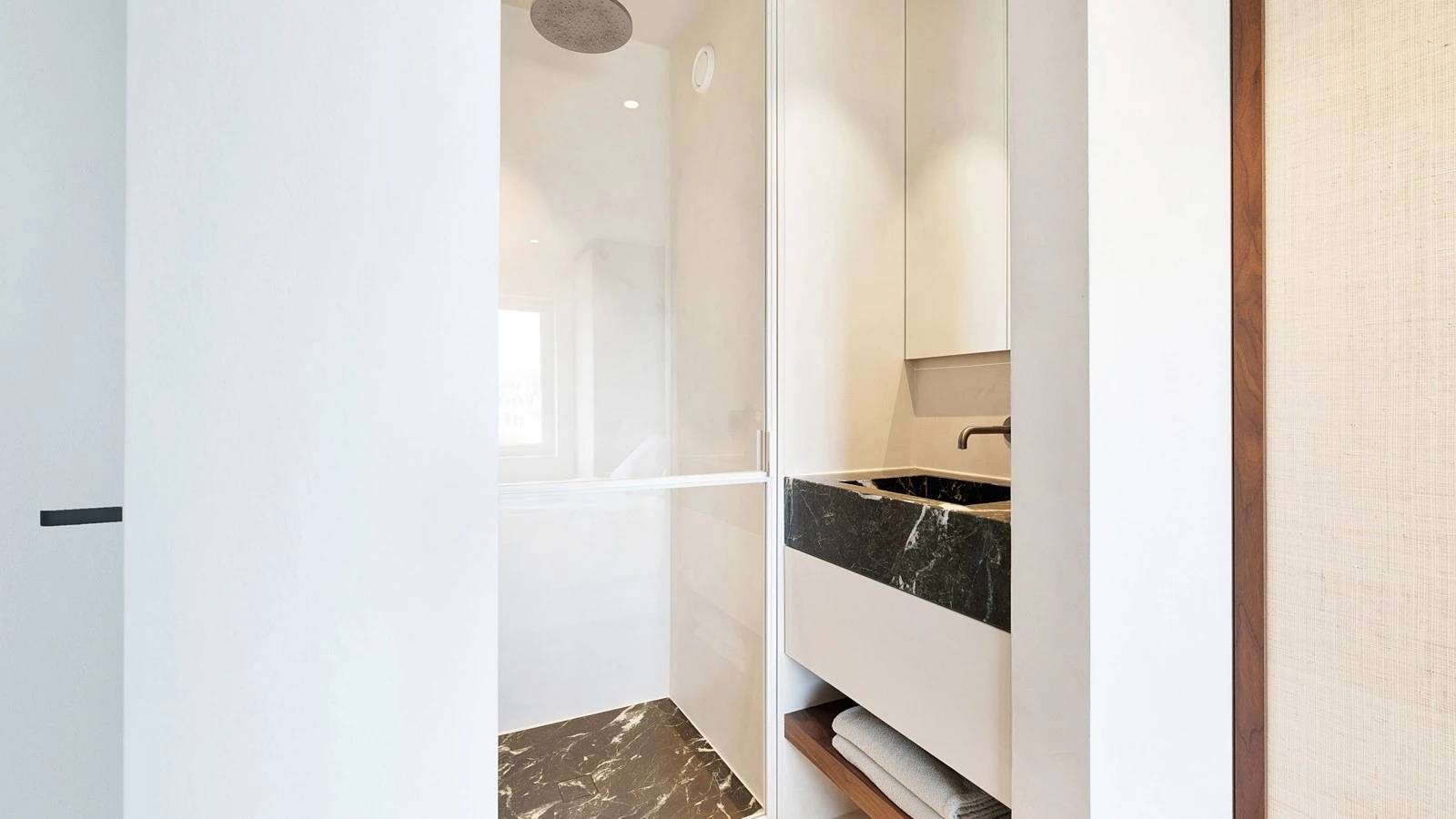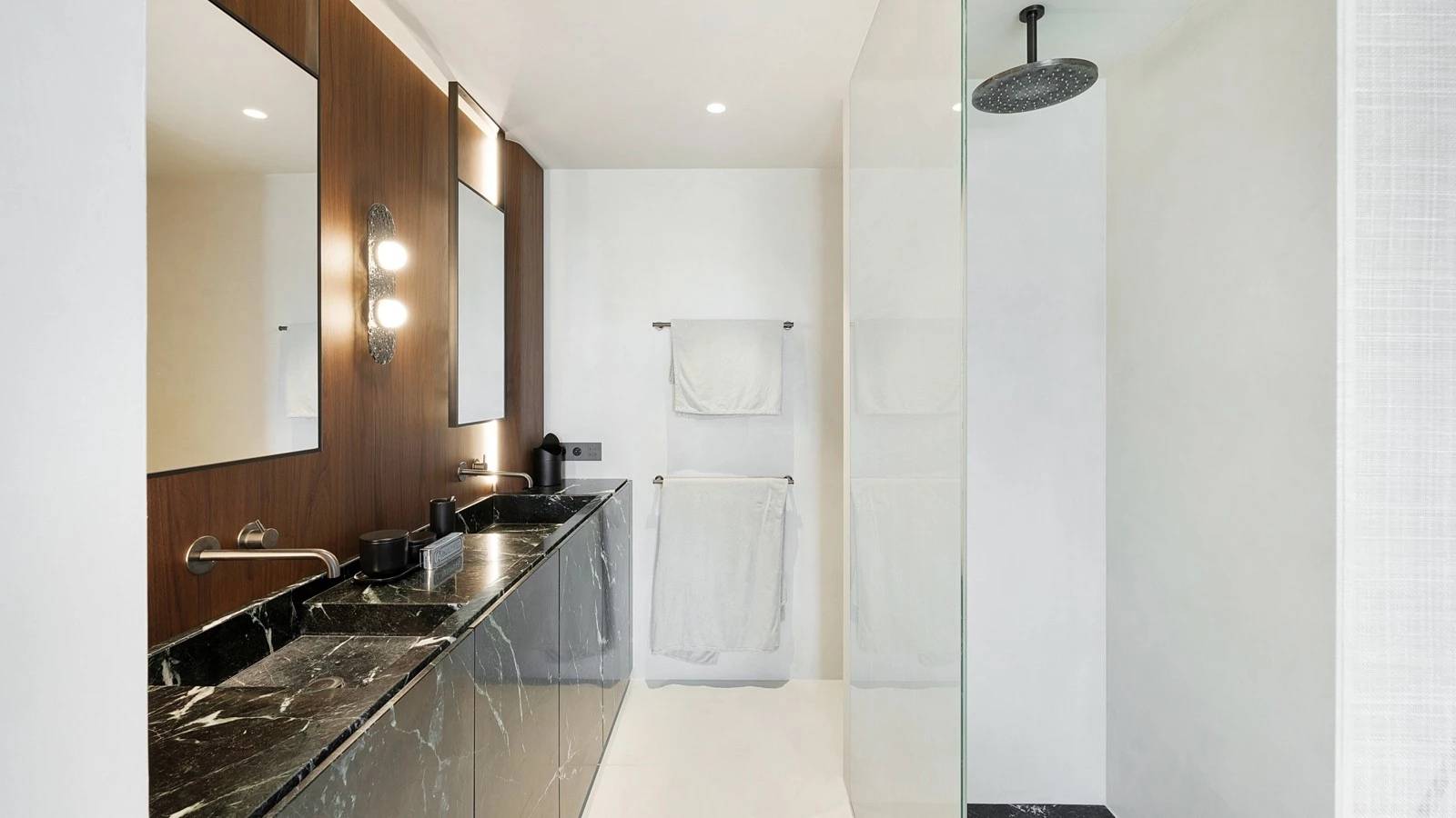 La suite parentale dispose d’une salle de douche privative. Les deux autres chambres sont également pourvues chacune de leur propre salle de douche et offrent une vue splendide sur la mer.