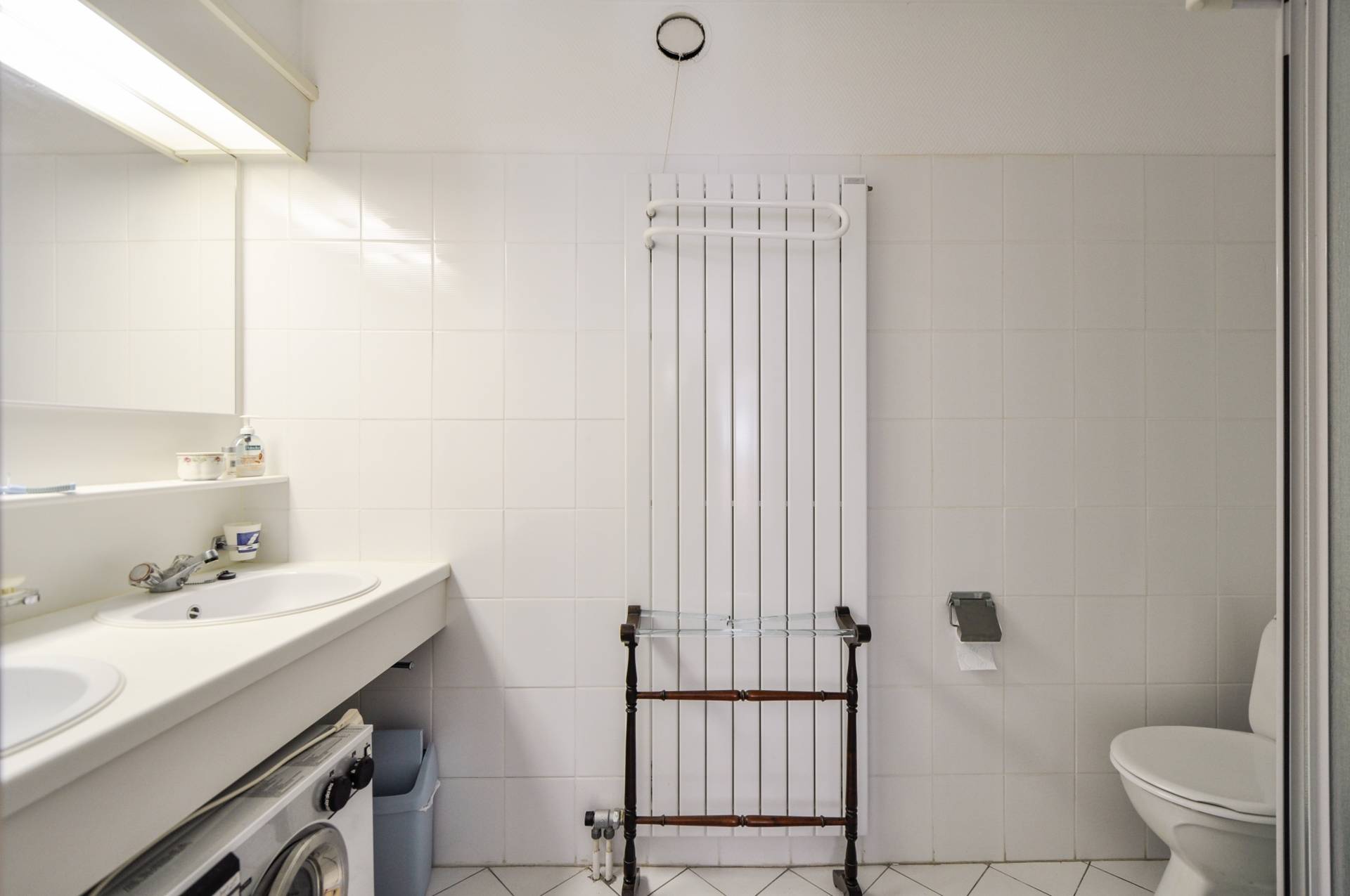 À l'arrière il y a 3 chambres à coucher. 2 Chambres ont de nombreux placards et ouvrent sur une terrasse ensoleillée. Il y a 1 salle de bains avec baignoire, double lavabo et toilette. Il y a une salle de douche spacieuse avec un double lavabo, une douche et une toilette.