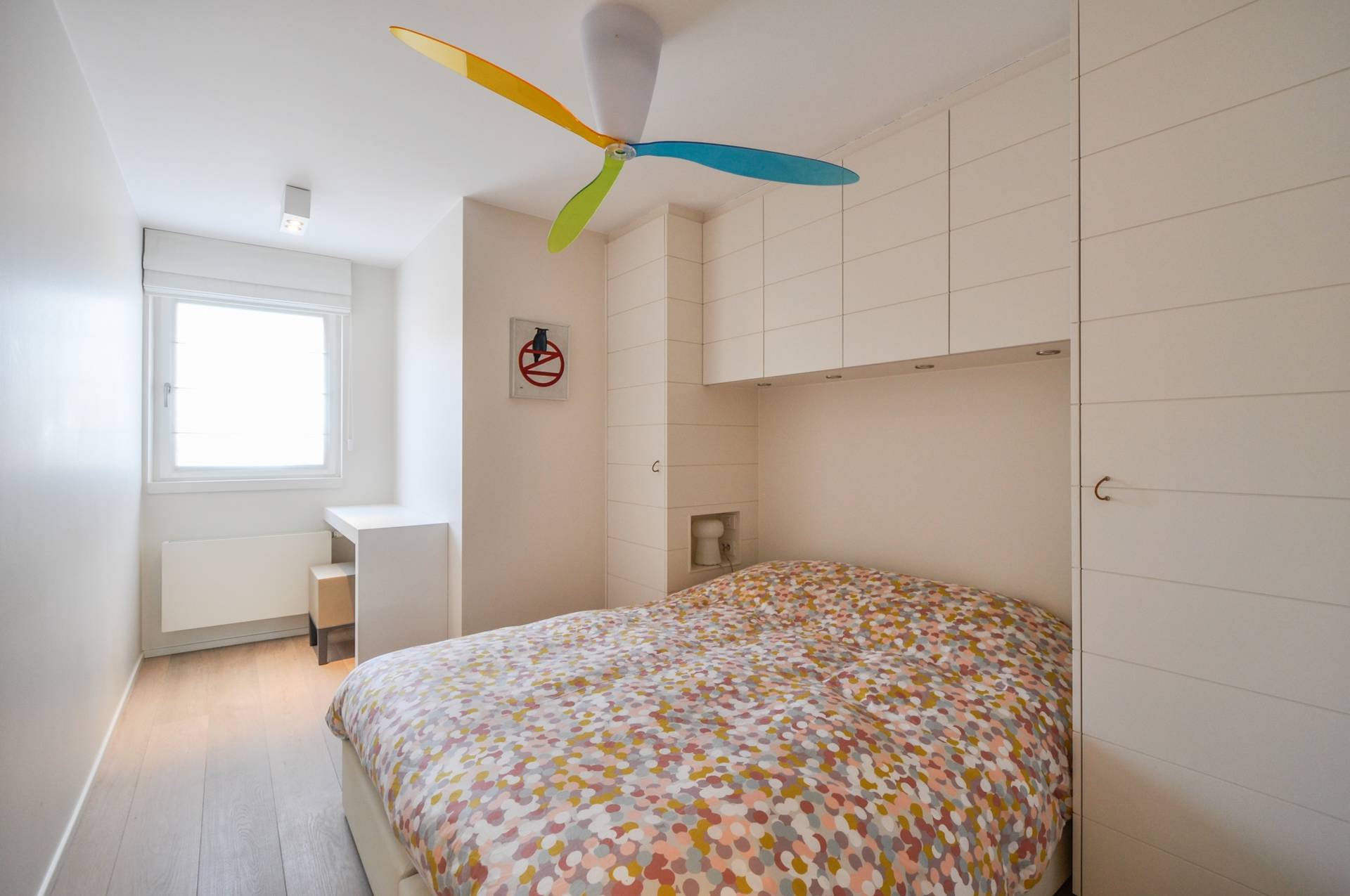 Composition: Entrée avec vestiaire et toilette invités. Séjour chaleureux avec terrasse magnifique et splendide vue mer, et vue sur la Place Albert et les villas du Zoute. Cuisine semi-ouverte, équipée, avec débarras attenant. Coin à manger.