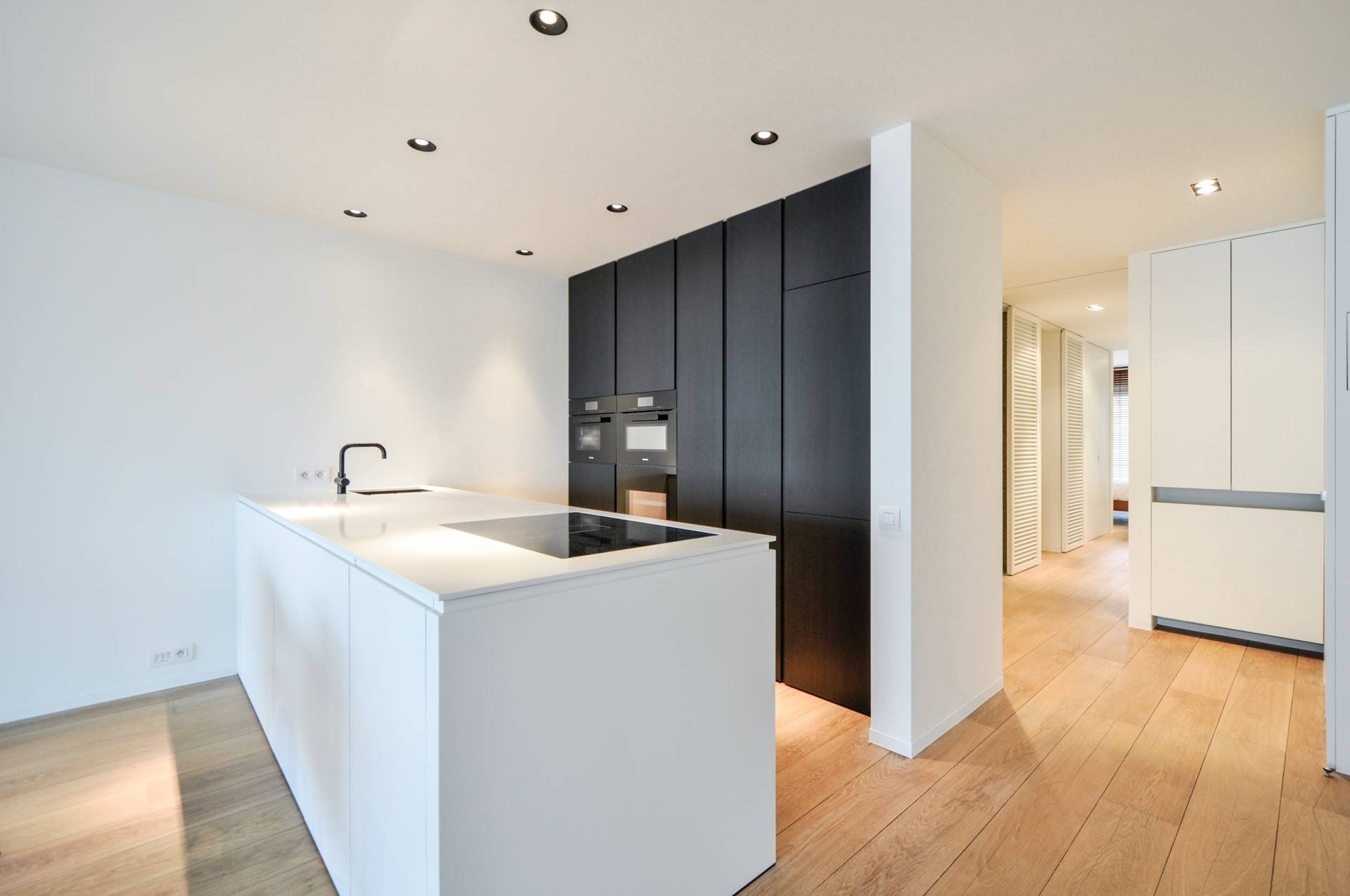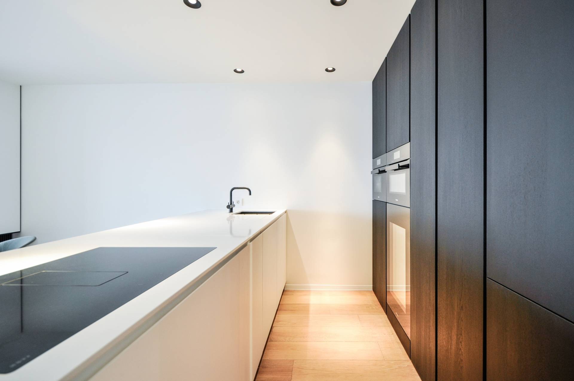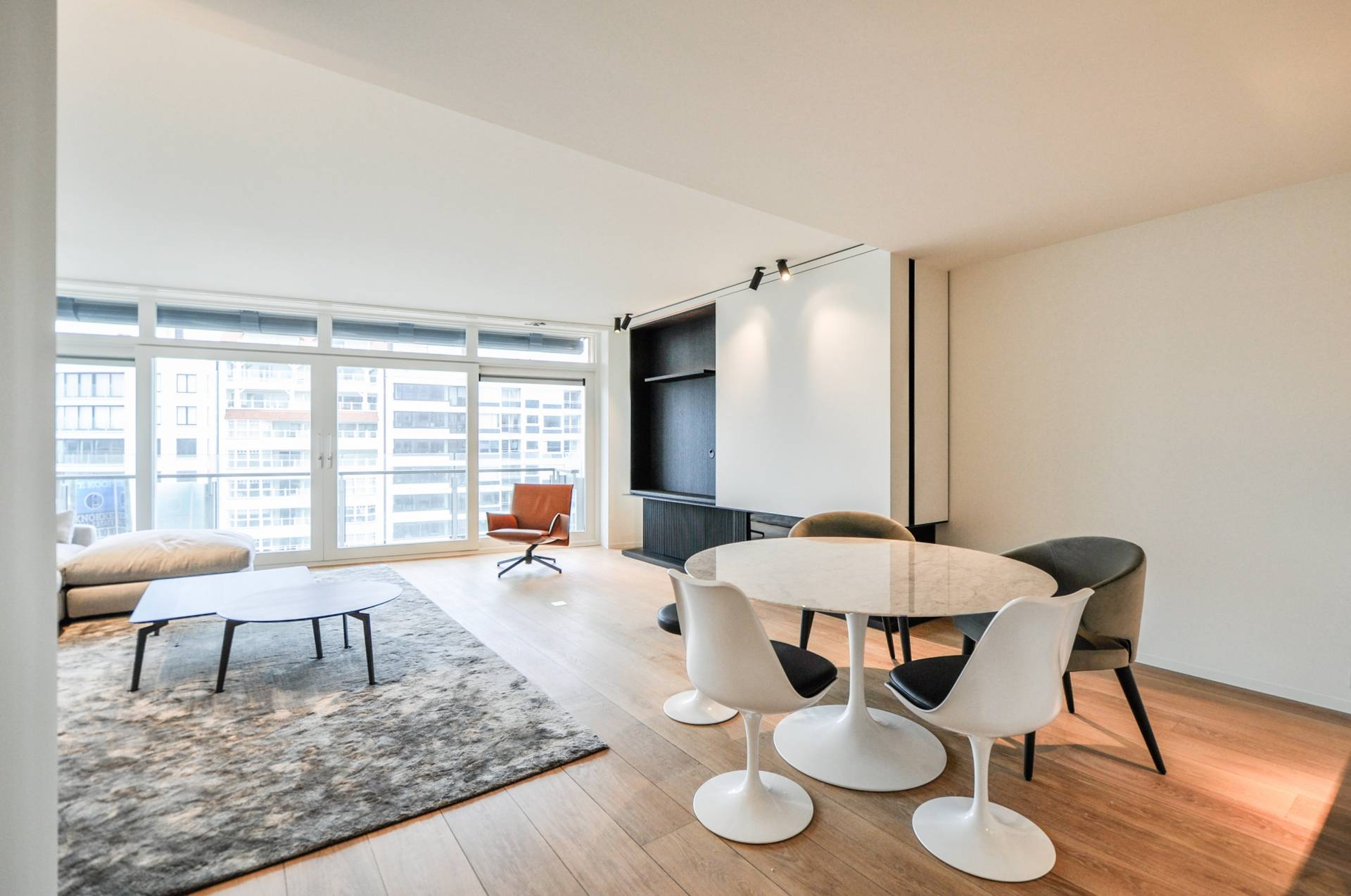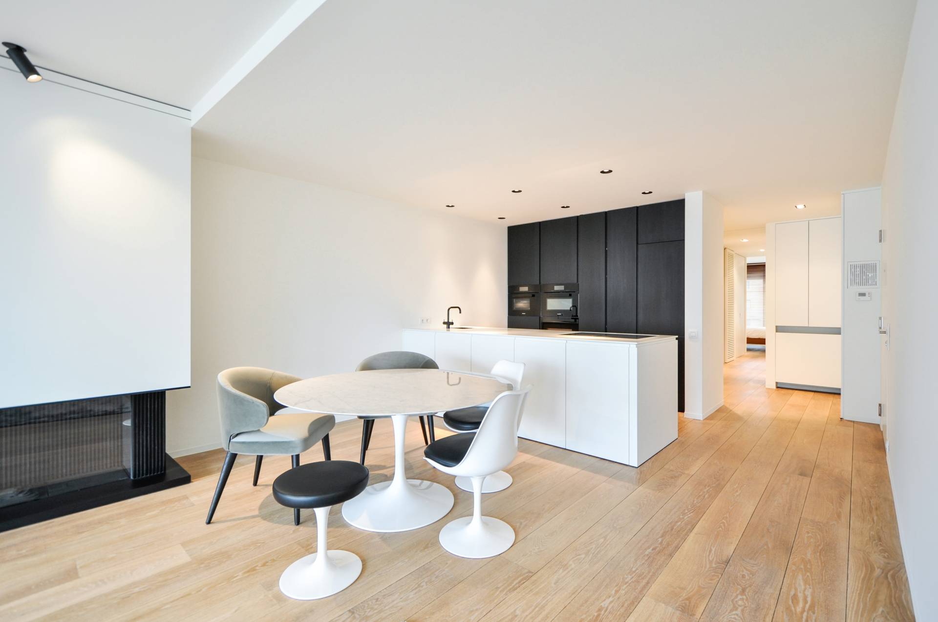 Composition: Entrée avec toilette invités et vestiaire. Séjour ensoleillé avec feu ouvert au gaz. Terrasse avec belle vue mer, et vue sur la Place Albert. Coin à manger. Cuisine ouverte, prévu d'appareils Miele (avec e.a. un frigo à vins).