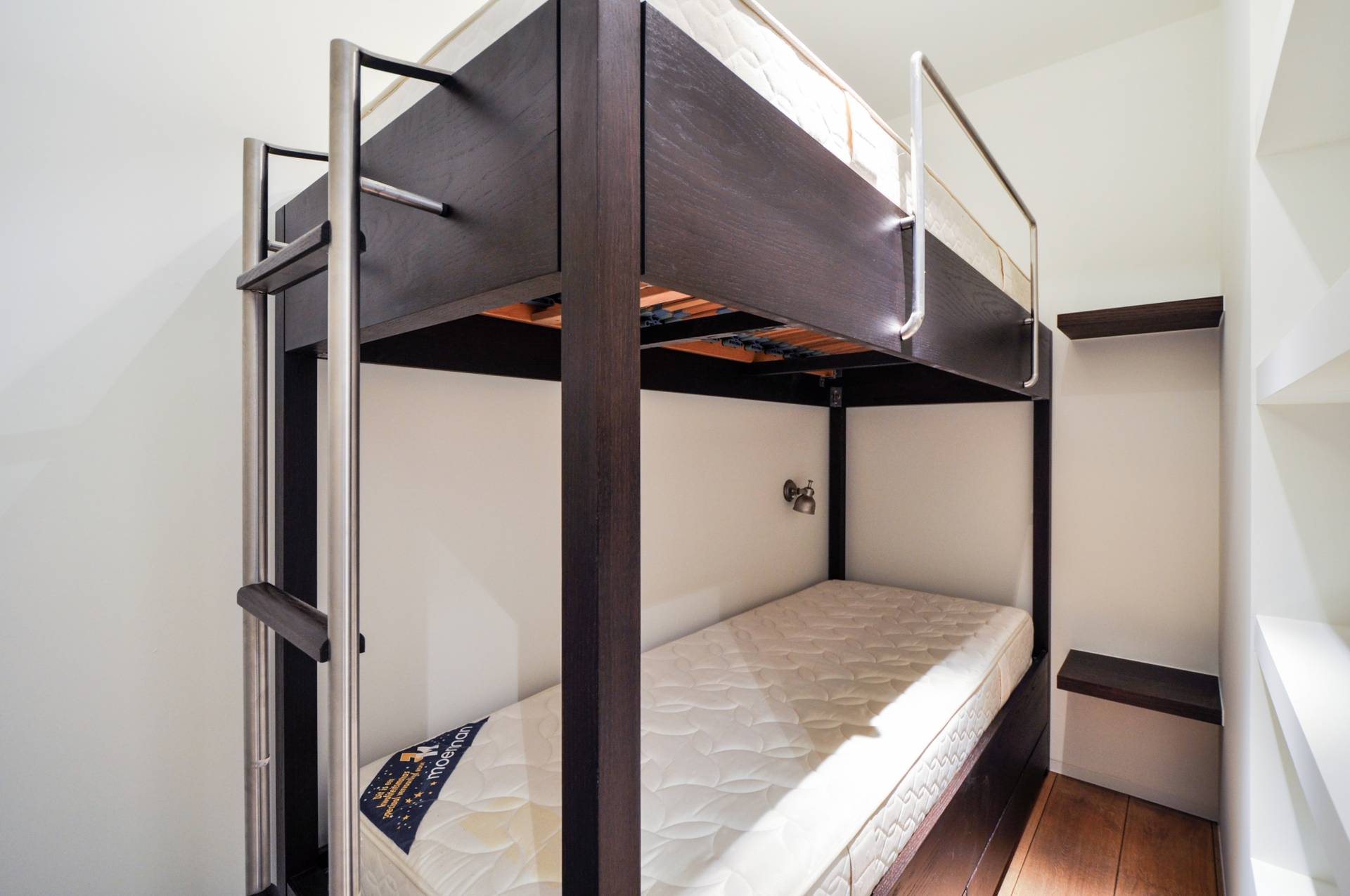 Il y a 3 chambres à coucher, dont 2 belles chambres lumineuses à l'arrière, qui donnent sue une terrasse agréable. De nombreux placards. La 3eme chambre est une plus petite chambre avec des lits superposés.