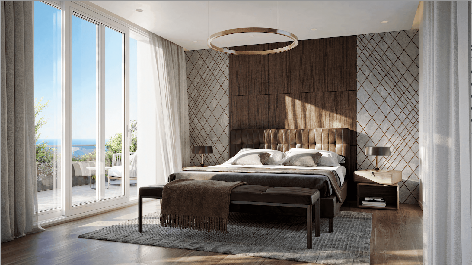10ème étage : Entièrement dédié à la chambre principale. Cela comprend un dressing, une grande salle de bains et l’intimité de la grande terrasse.
