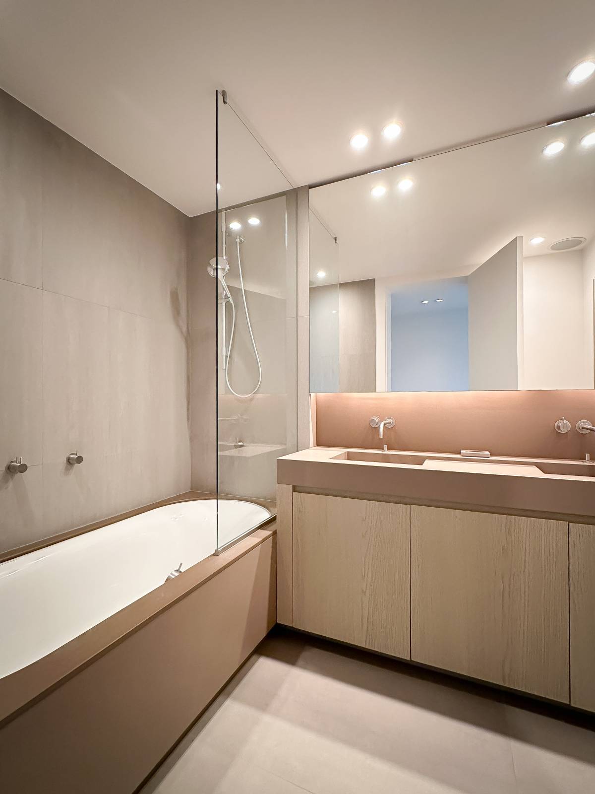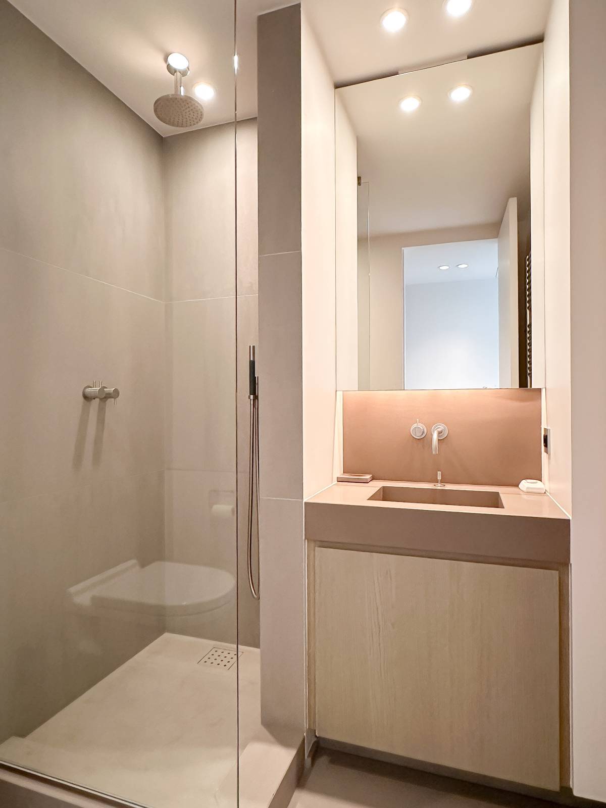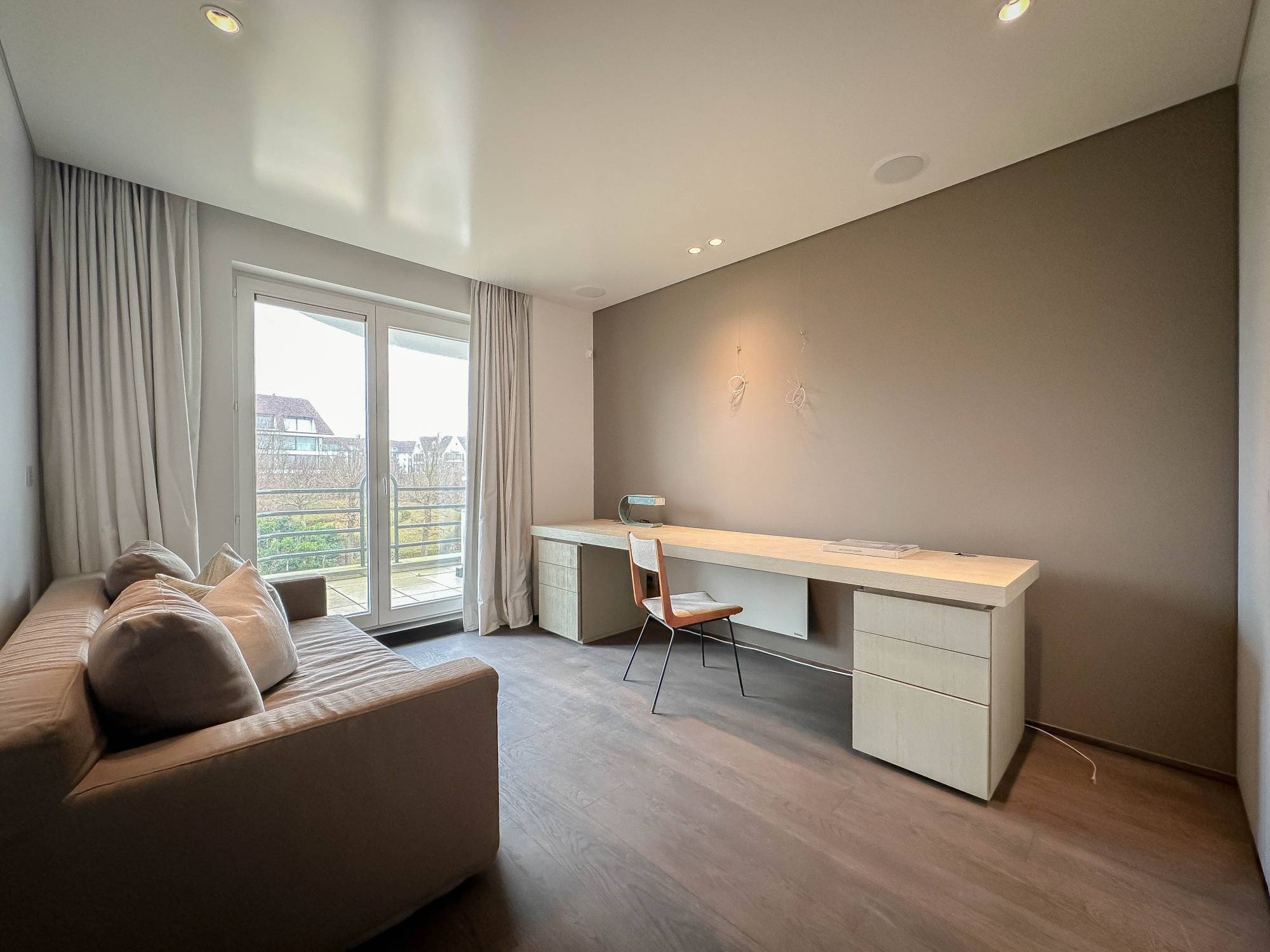 Composition: Entrée avec vestiaire et toilettes invités. Cuisine ouverte, équipée de tout le confort, séjour avec accès à la terrasse orientée sud bénéficiant d'une belle vue sur la verdure, sans vis-à-vis. Chambre principale avec salle de bains séparée avec double lavabo, baignoire et toilettes. La 2ème chambre dispose d'une salle de douche. La 3ème chambre est aménagée en bureau avec un canapé-lit, cette chambre bénéficie d'un accès à la 2ème terrasse.