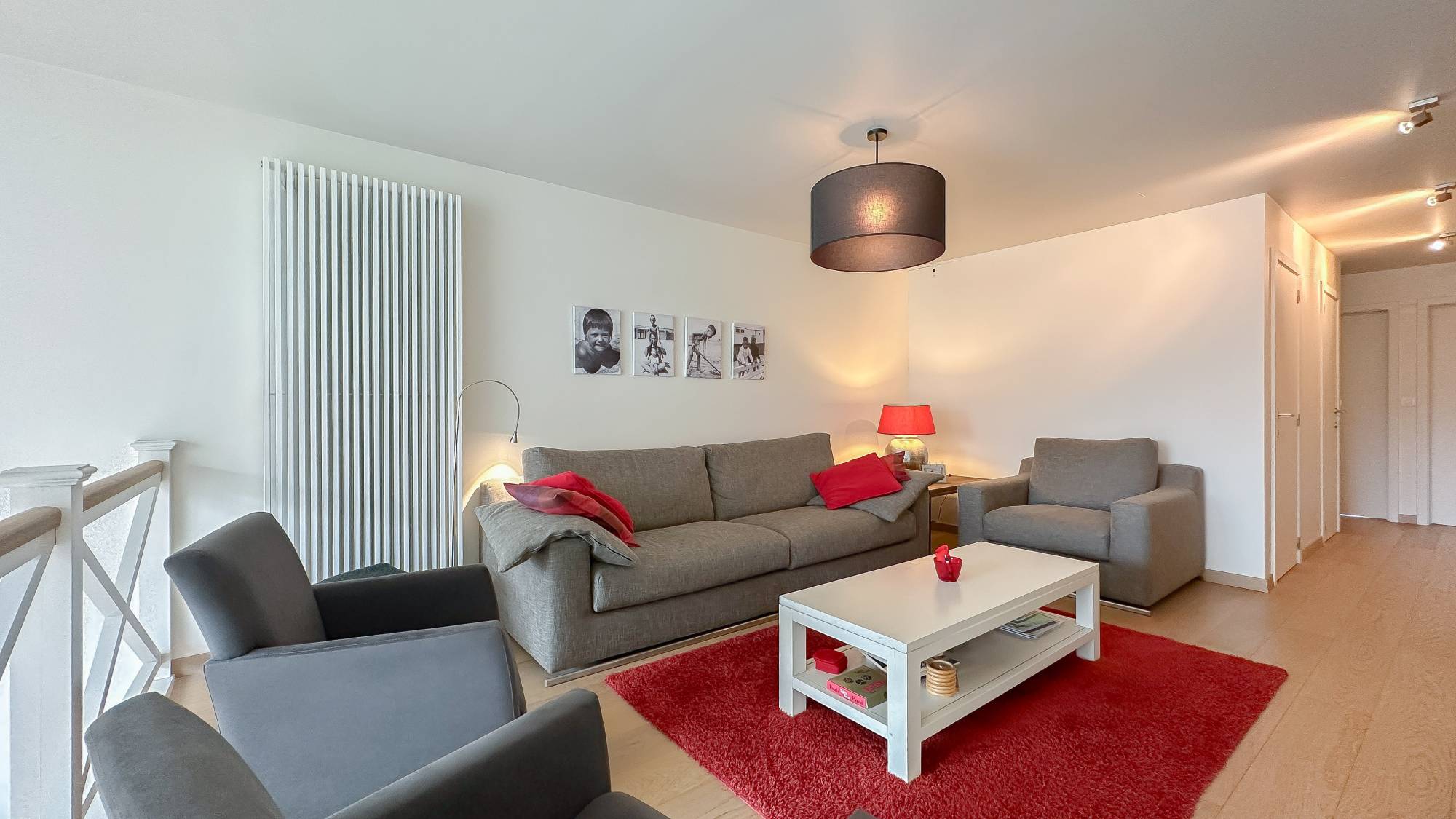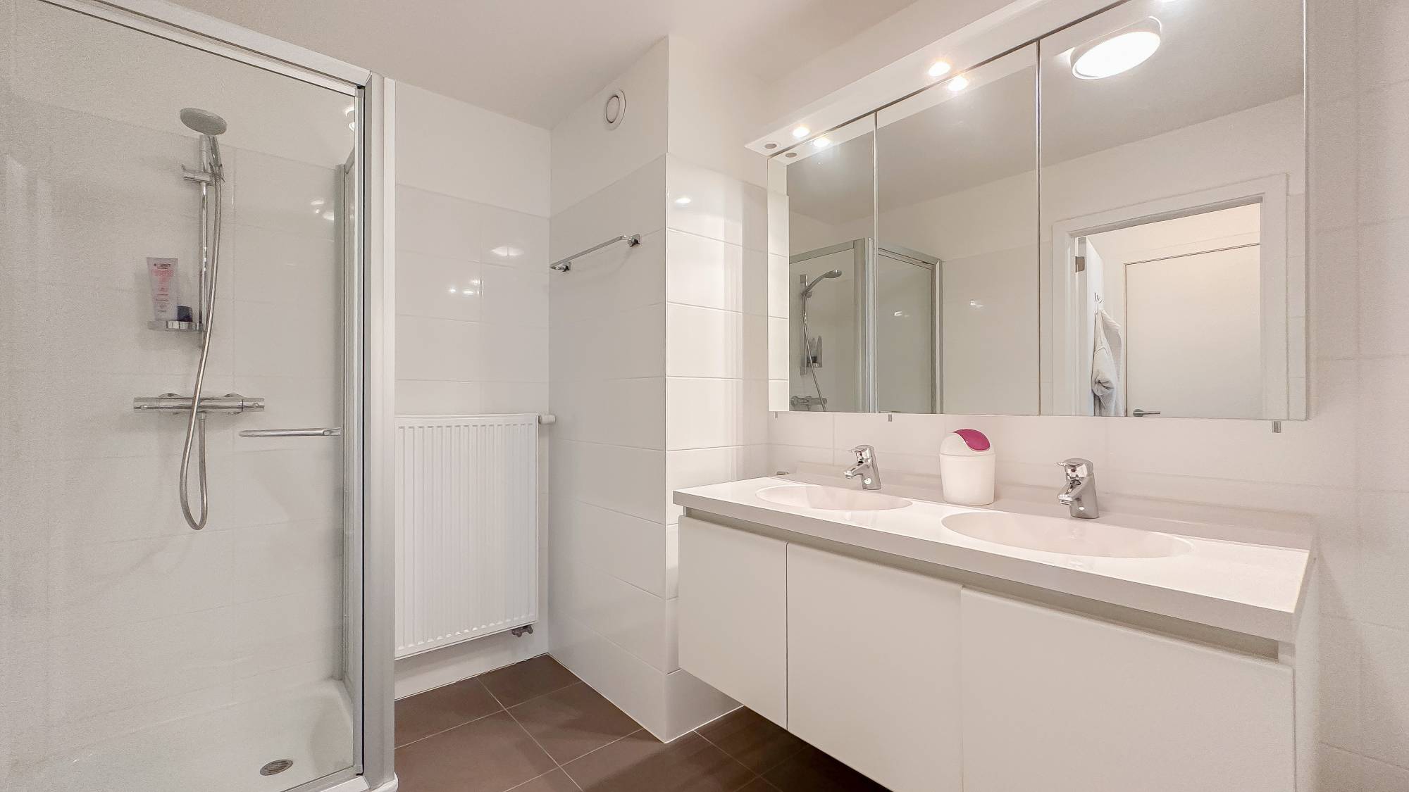 Composition : Entrée avec toilettes invités et vestiaire. Salle à manger lumineuse donnant sur une terrasse ensoleillée. Cuisine ouverte équipée de tout le confort contemporain. A l'arrière, 2 chambres spacieuses donnant toutes deux sur une terrasse. 1 salle de bain séparée.