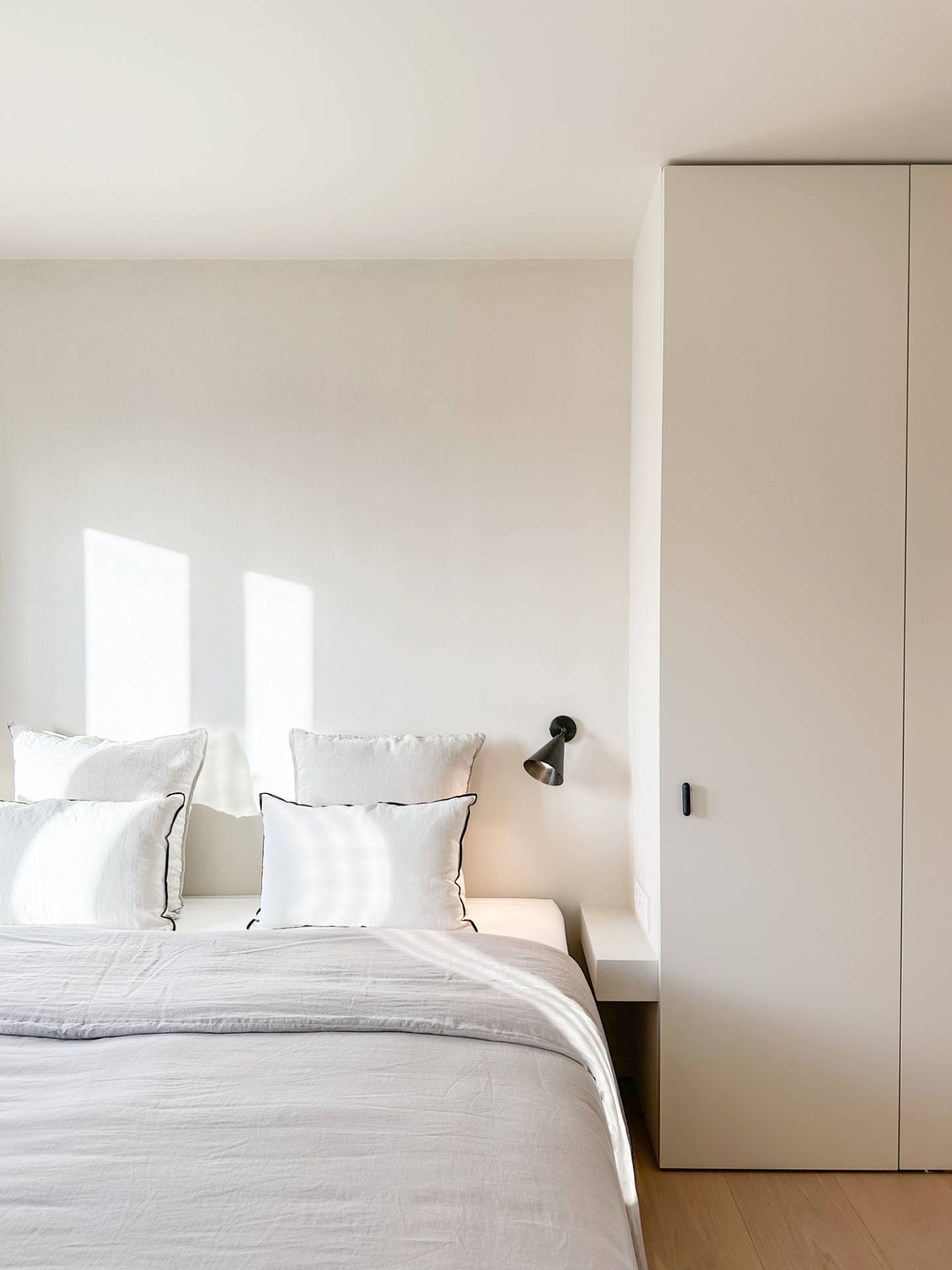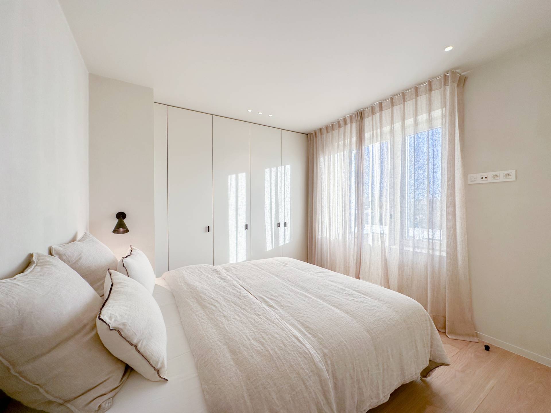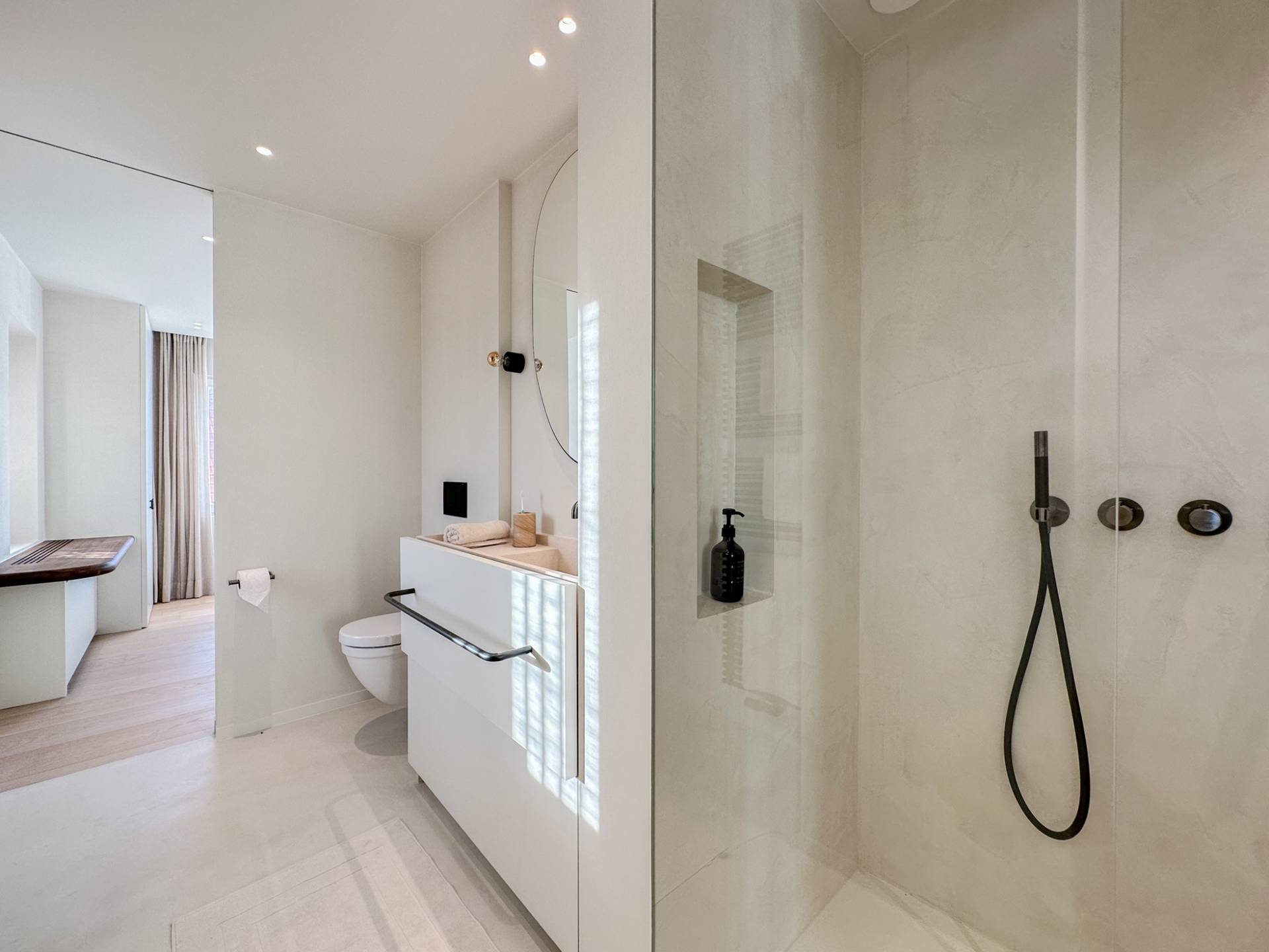 Chambre à coucher principale avec terrasse, salle de douche et toilettes séparées. Une 2ème chambre à coucher avec terrasse suivie d'une salle de douche (avec toilettes) commune avec la 3ème chambre. La 4ème chambre se trouve à l'étage mansardé, qui était autrefois une chambre de bonne. L'appartement dispose également d'un débarras avec raccordements pour une machine à laver.