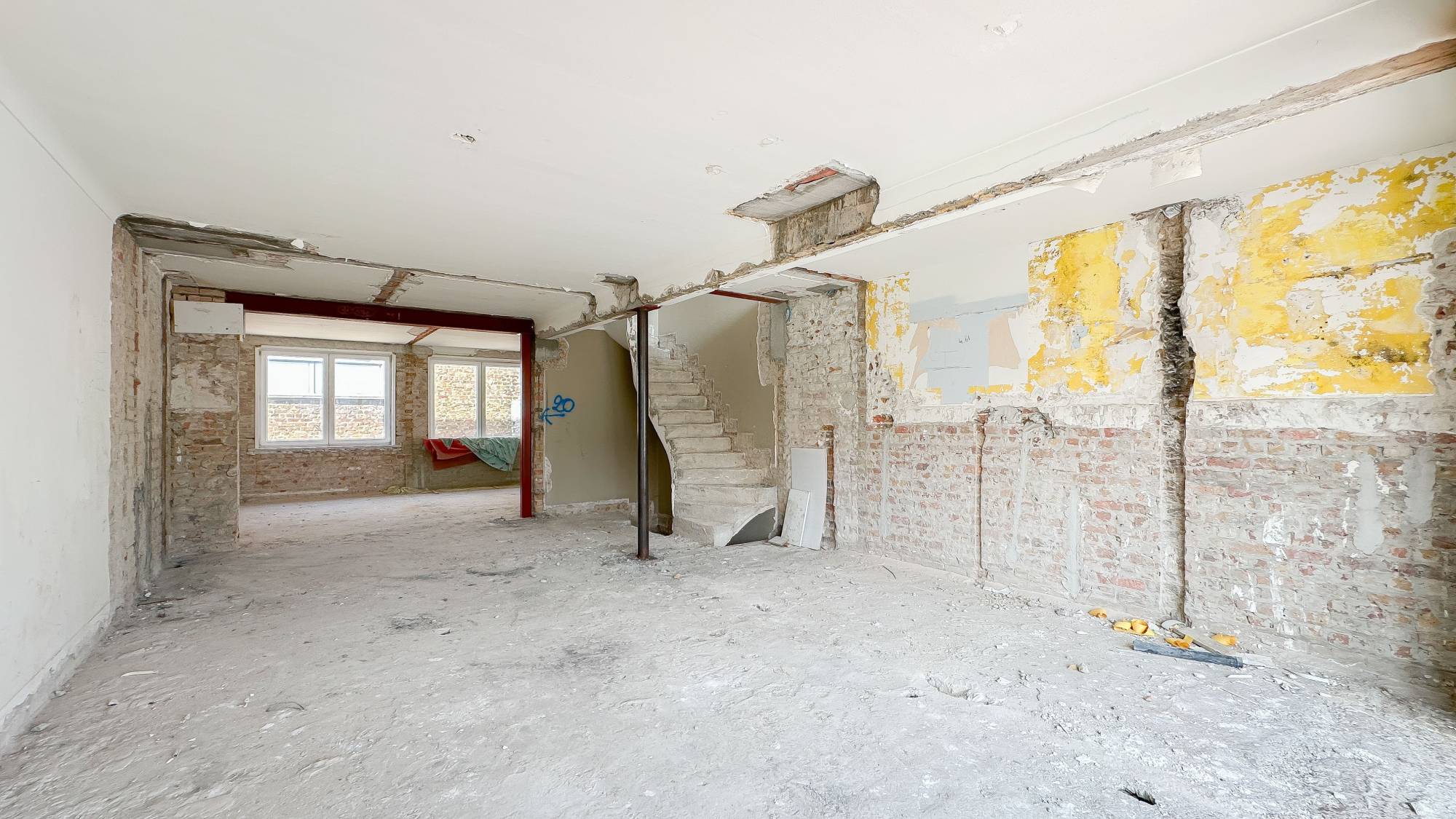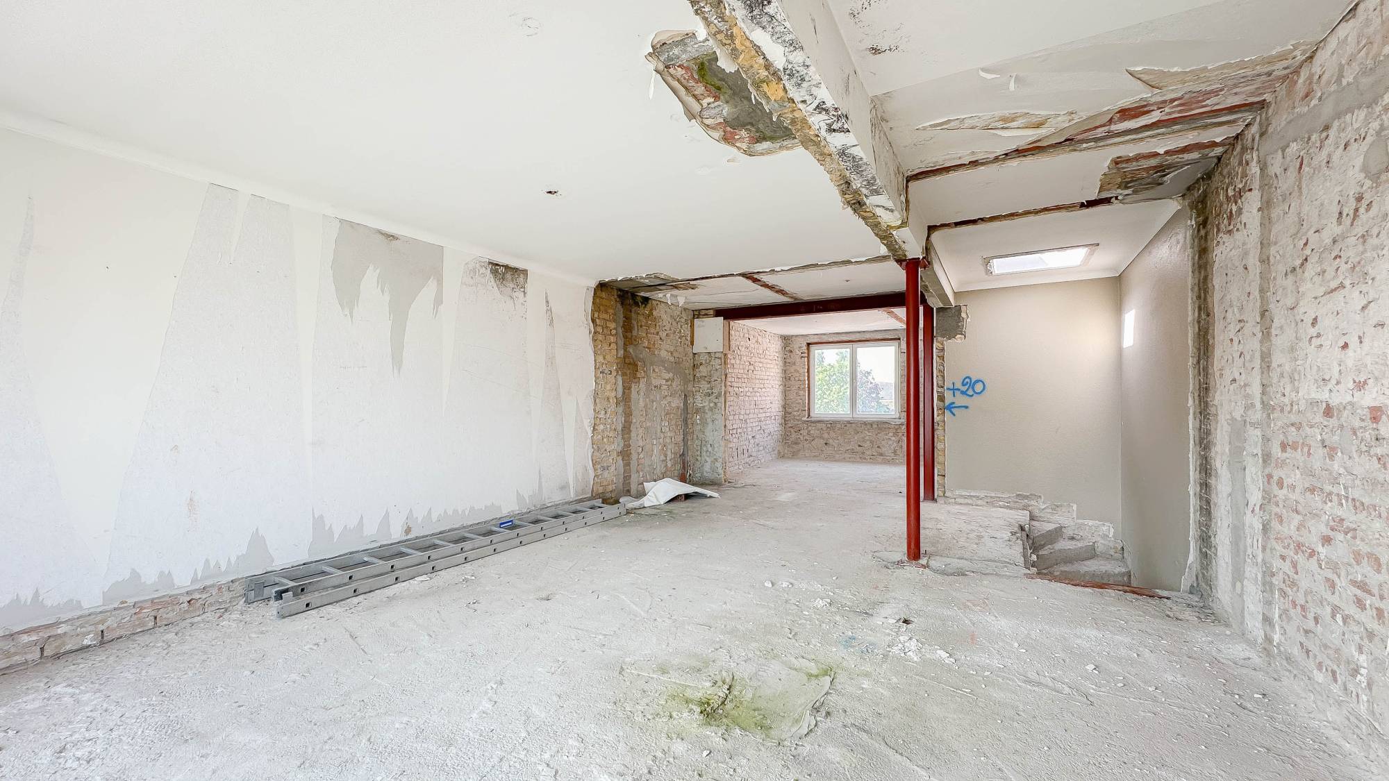 - Deuxième étage : Espace continu, entièrement aménageable en appartement.