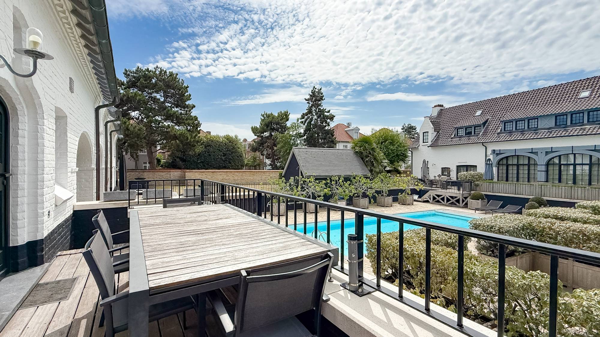 La propriété comprend 5 chambres, 2 salles de bains, une spacieuse terrasse ensoleillée avec vue sur la piscine commune, et bénéficie d’une finition soignée jusque dans les moindres détails : parquet en chêne, placards sur mesure et cuisine entièrement équipée confèrent à cette habitation une élégance certaine.