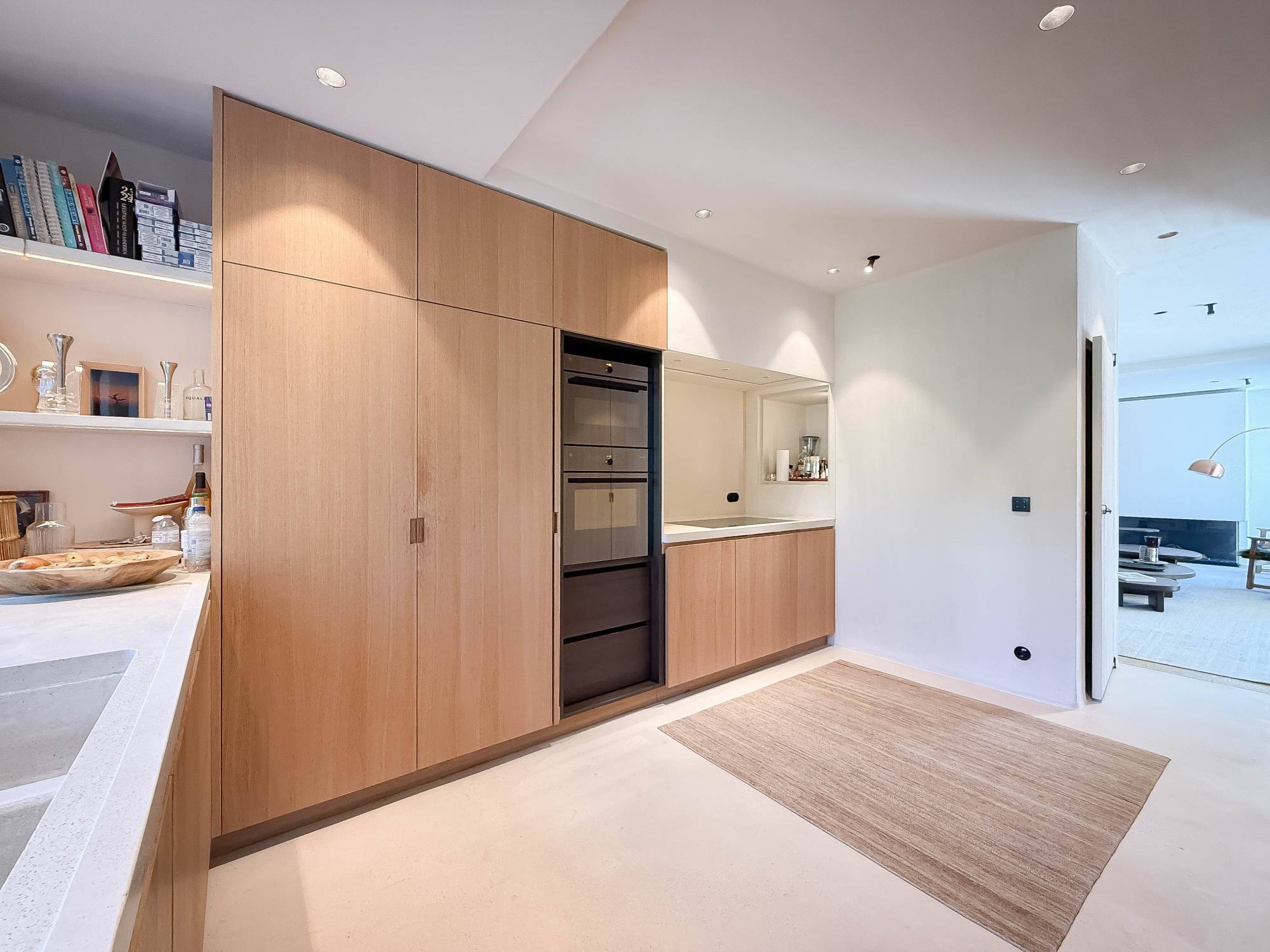 Idéalement située à proximité immédiate du Zegemeer et à distance de marche du centre commercial de Knokke, cette villa jumelée a été entièrement rénovée avec un sens aigu du détail et des matériaux haut de gamme. Le résultat? Une atmosphère apaisante, lumineuse et résolument contemporaine.