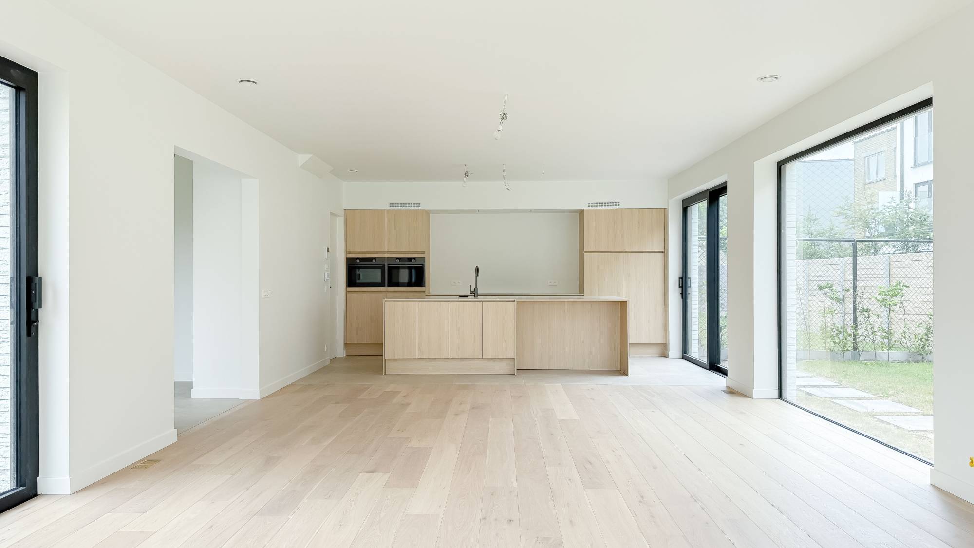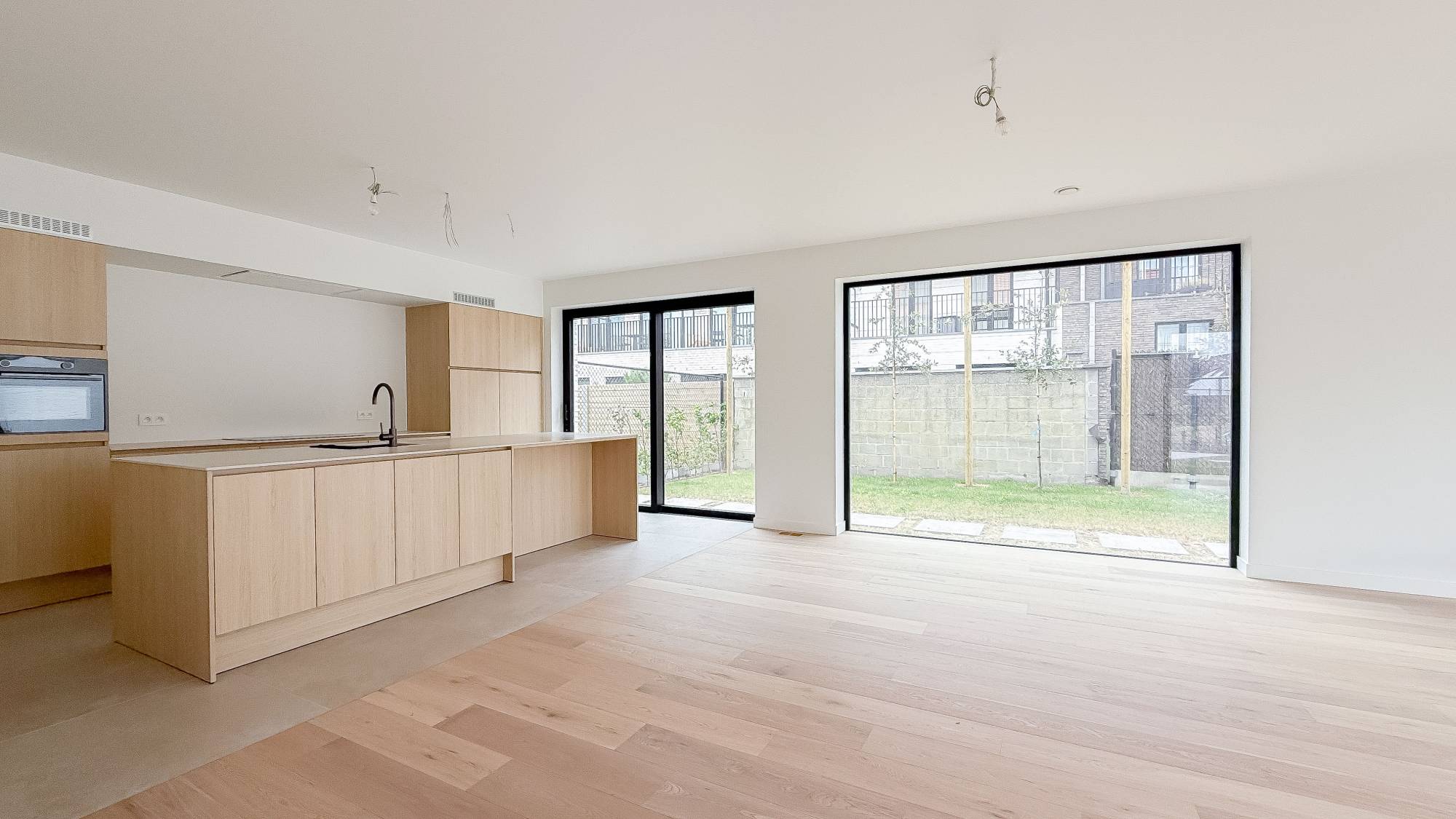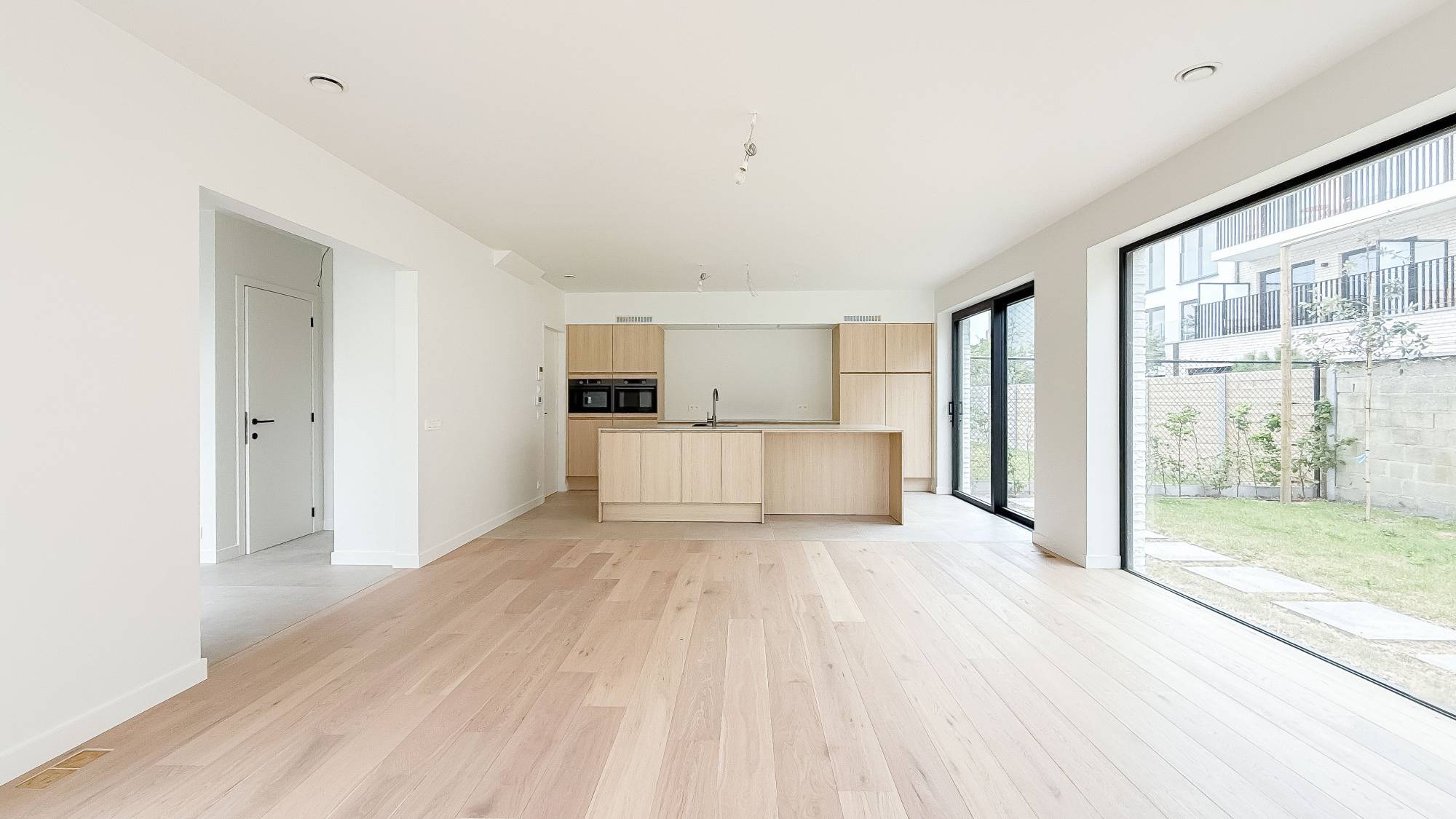 Dès l’entrée, vous serez accueilli par un vaste hall avec vestiaire et toilette invités. Le séjour baigné de lumière offre un espace de vie chaleureux, avec un salon convivial et une salle à manger s’ouvrant sur un jardin ensoleillé — idéal pour se détendre ou recevoir. La cuisine ouverte, parfaitement équipée et dotée d’un îlot central, s’intègre harmonieusement à l’ensemble. Attenante, une buanderie pratique offre un espace de rangement supplémentaire, ainsi qu’un local fermé pour vélos.