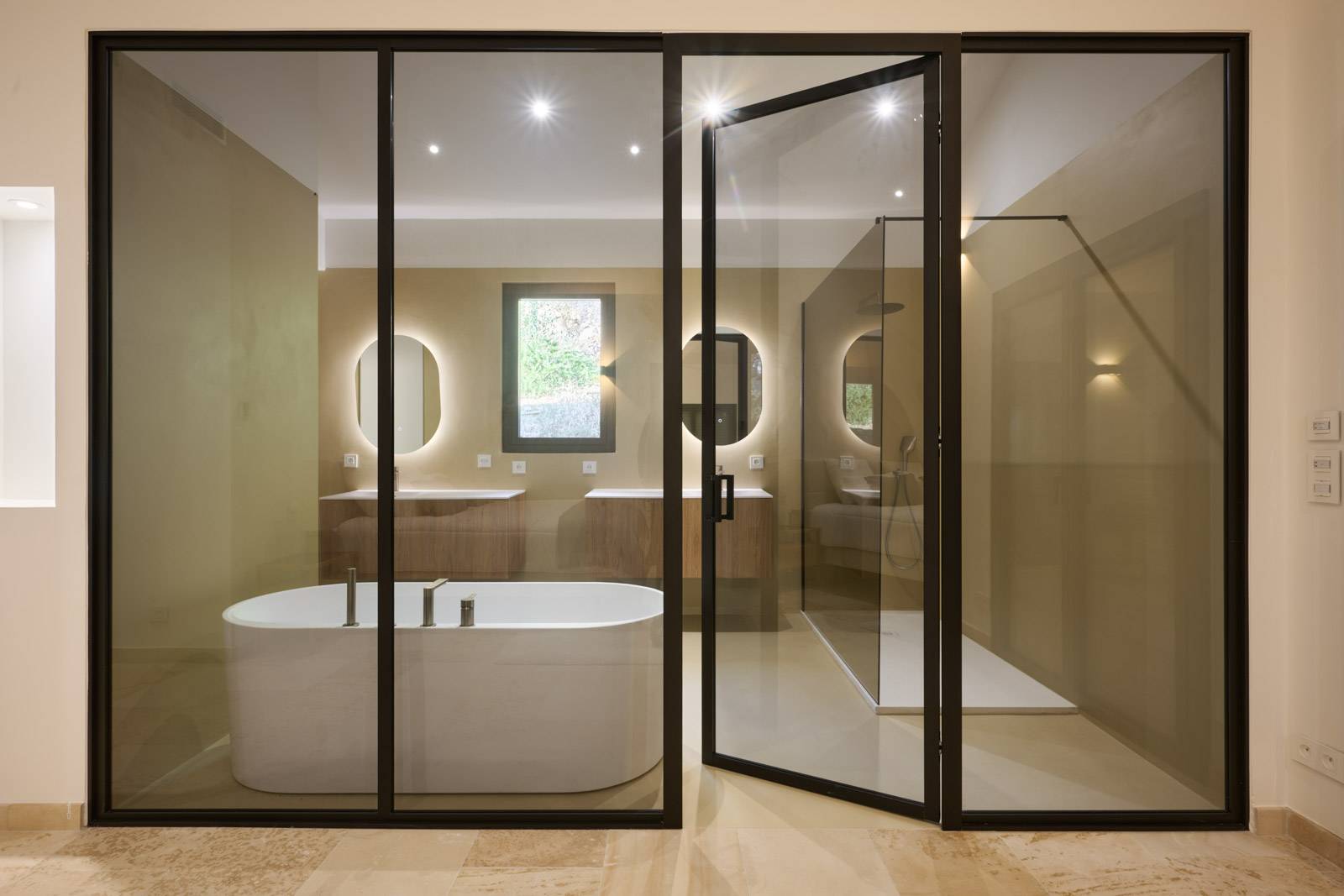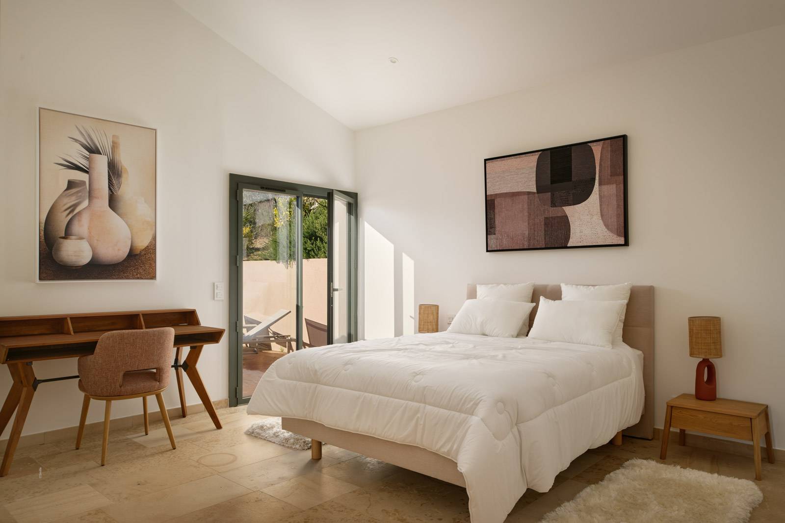 La villa dispose de quatre chambres en suite, dont une somptueuse suite parentale avec grand dressing, offrant confort et intimité. Un studio indépendant complète l’ensemble, idéal pour accueillir famille, amis ou personnel.